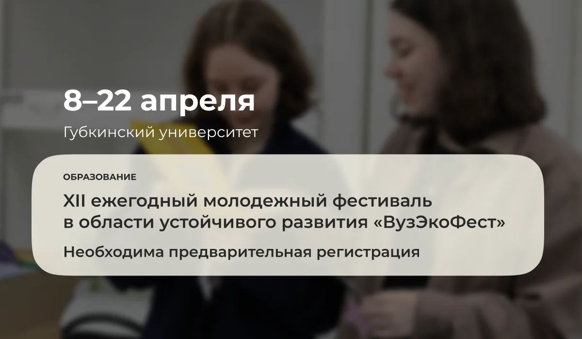 🍀 C 8 по 22 апреля 2026 года в Губкинском университете пройдёт XII ежегодный молодежный фестиваль в области устойчивого развития «ВузЭкоФест».