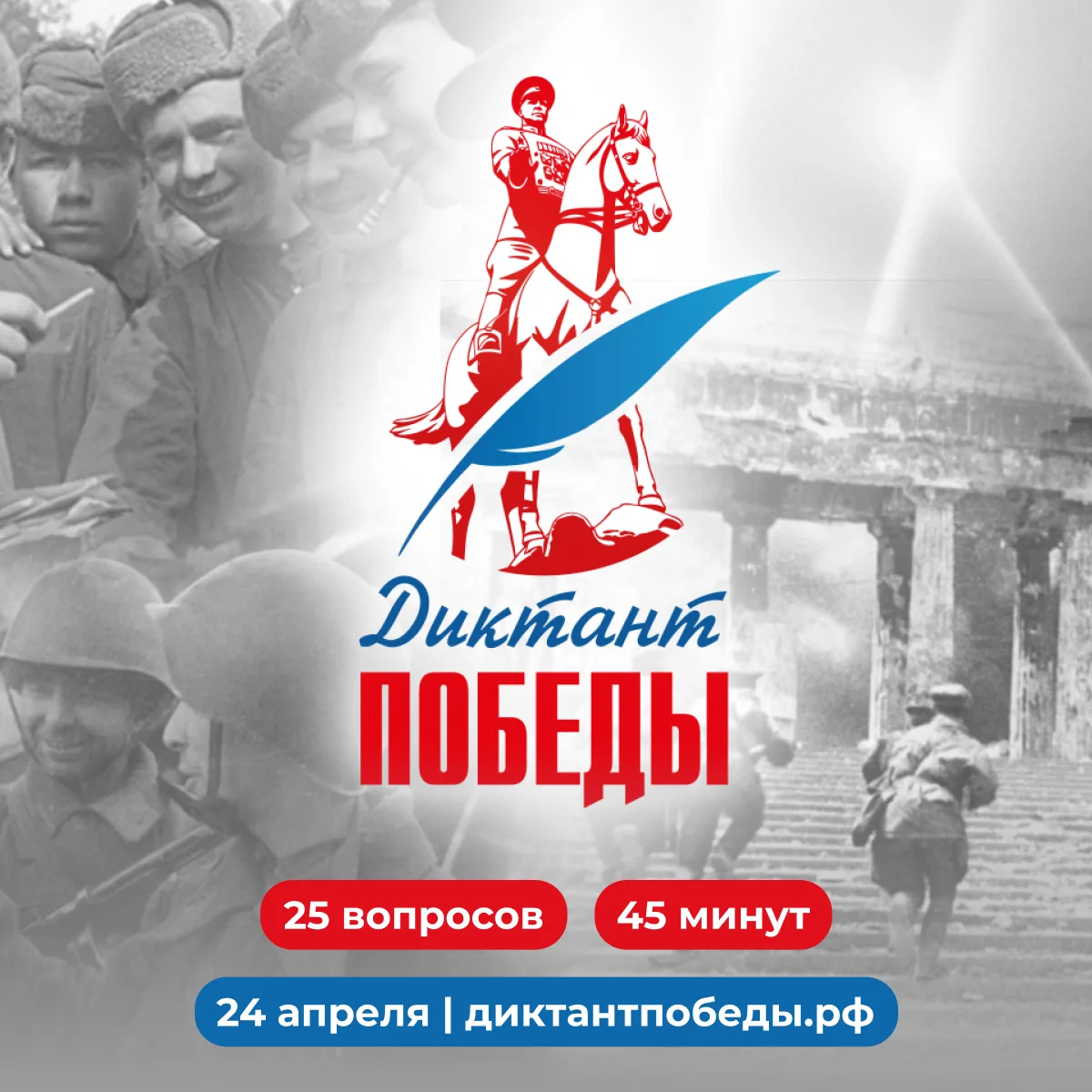 24 апреля 2026 года в онлайн-формате состоится ежегодный международный исторический диктант на тему событий Великой Отечественной войны 1941-1945 годов – «Диктант Победы». К участию приглашаются все желающие.