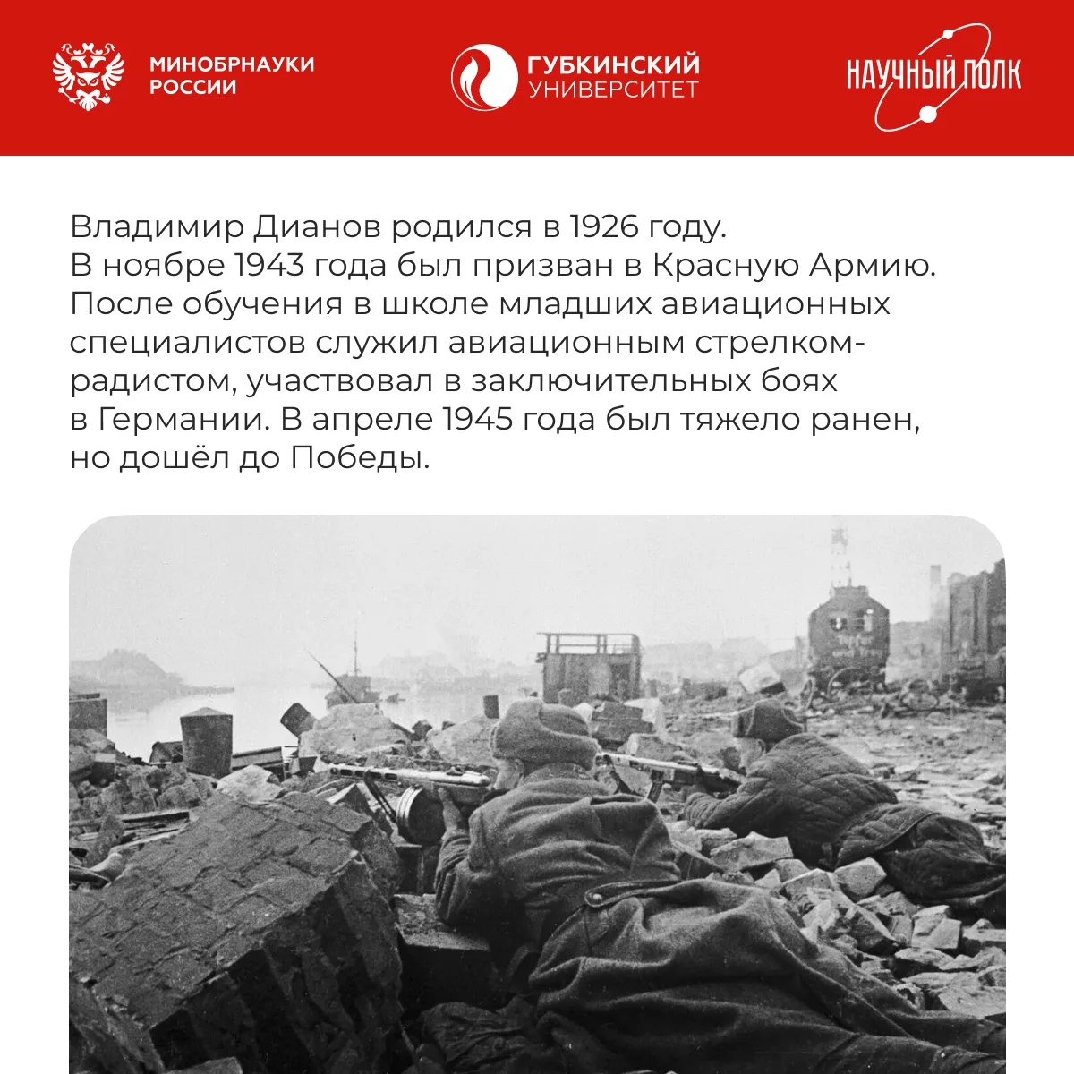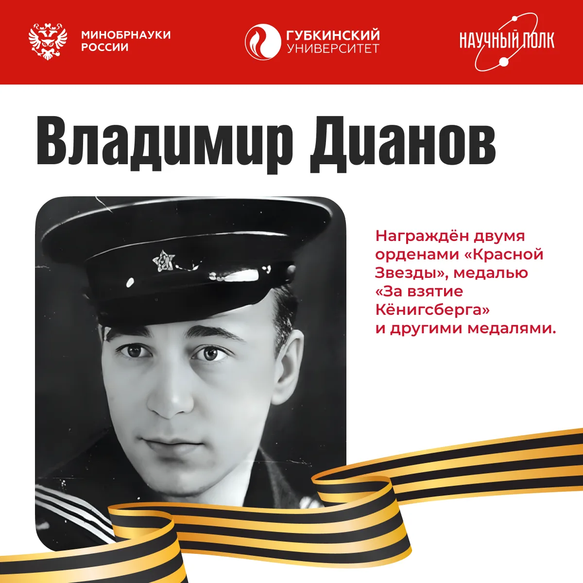 🔹 Владимир Дианов — авиационный стрелок-радист, кавалер двух орденов Красной Звезды, декан вечернего факультета, специалист в области автоматизации технологических процессов