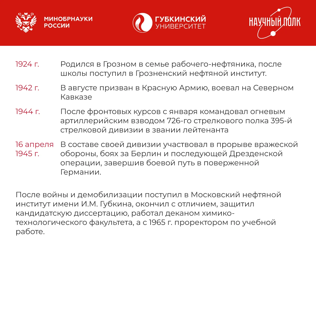 🎉 Продолжая вспоминать тех, кто определял путь Губкинского университета, мы обращаемся к наследию учёных, со дня рождения которых в этом году исполняется более 100 лет.