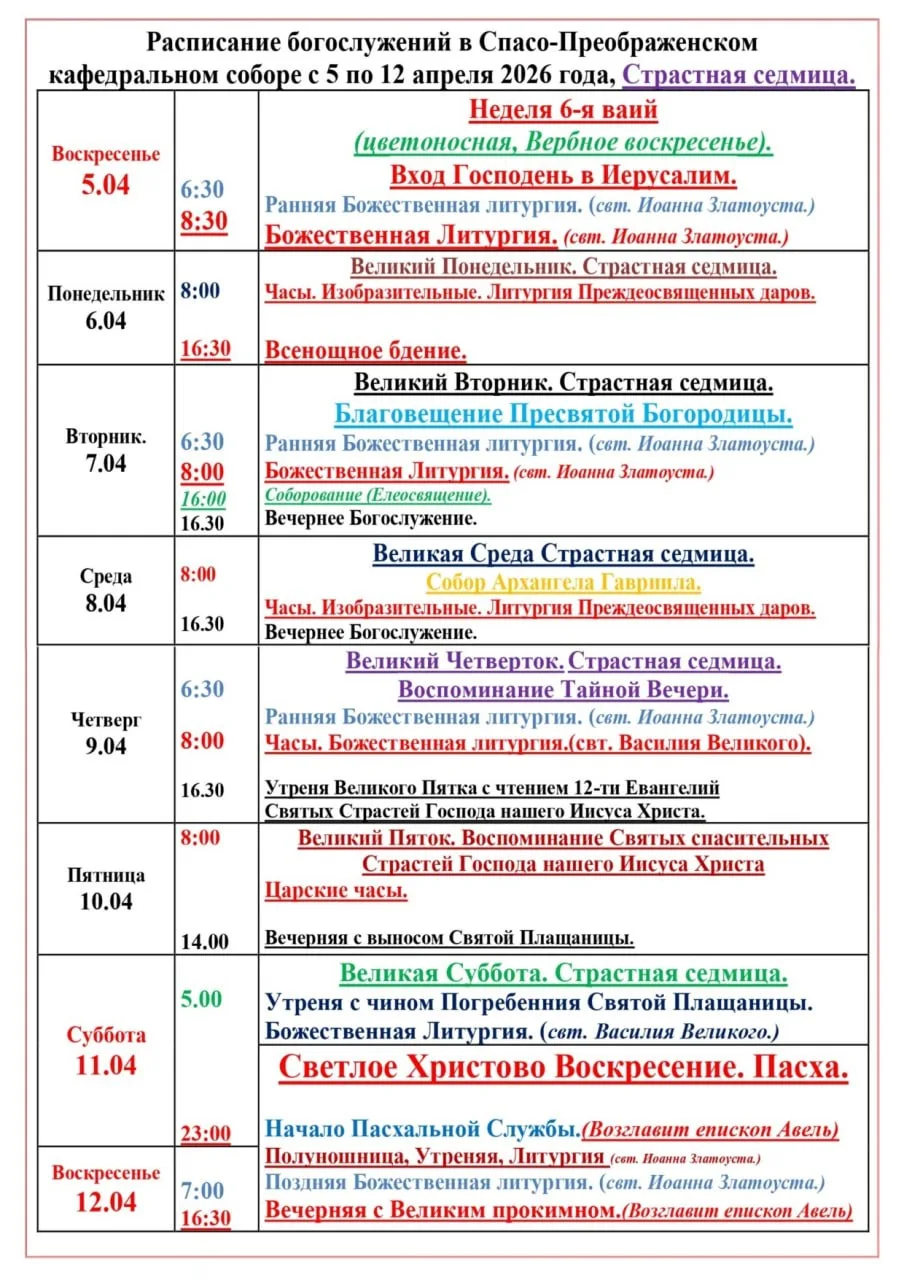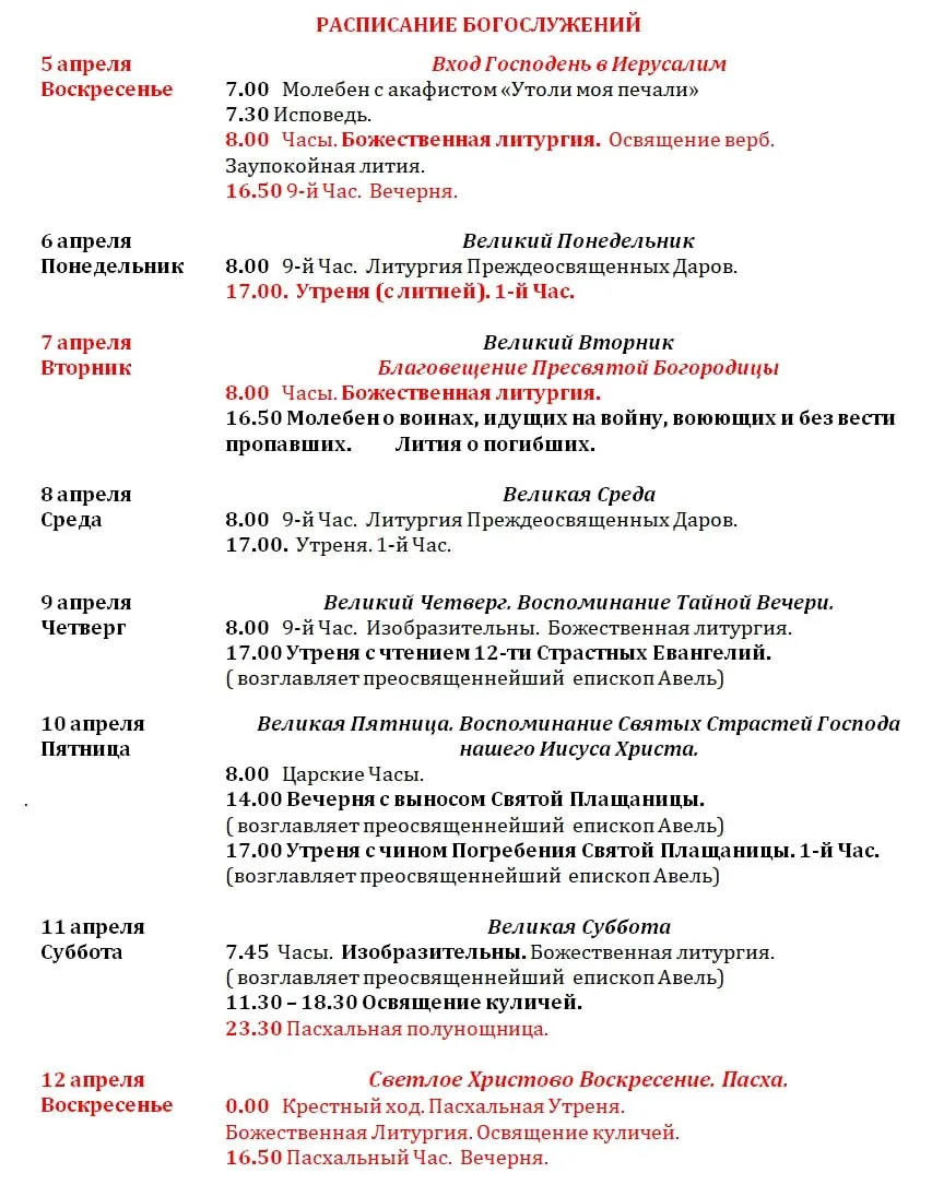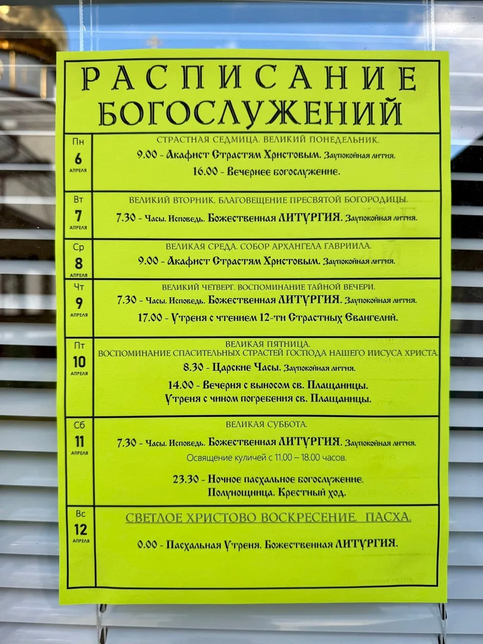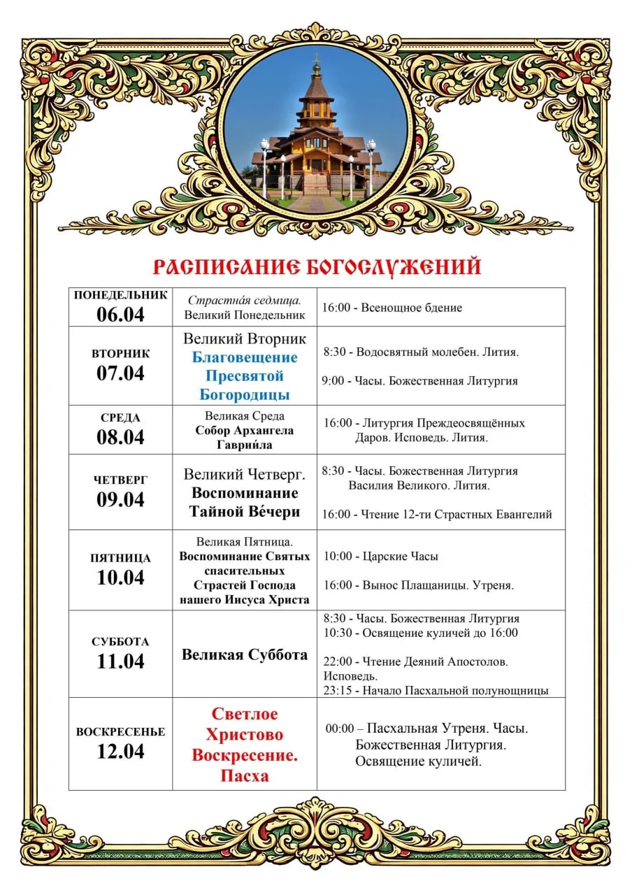 Расписание богослужений на Страстную неделю и Пасху в Губкине