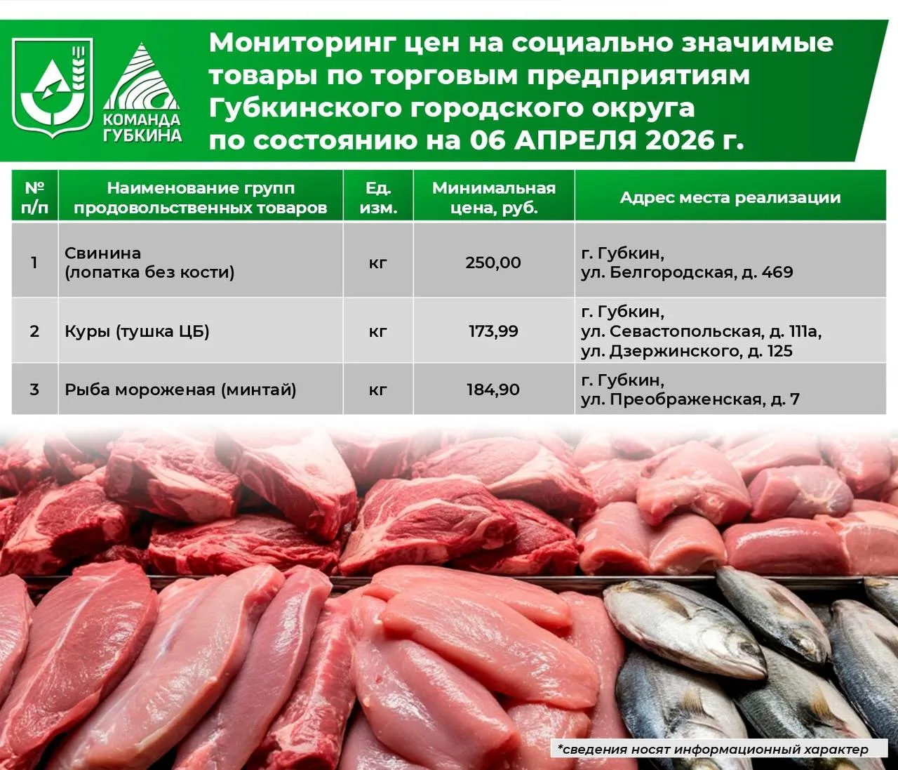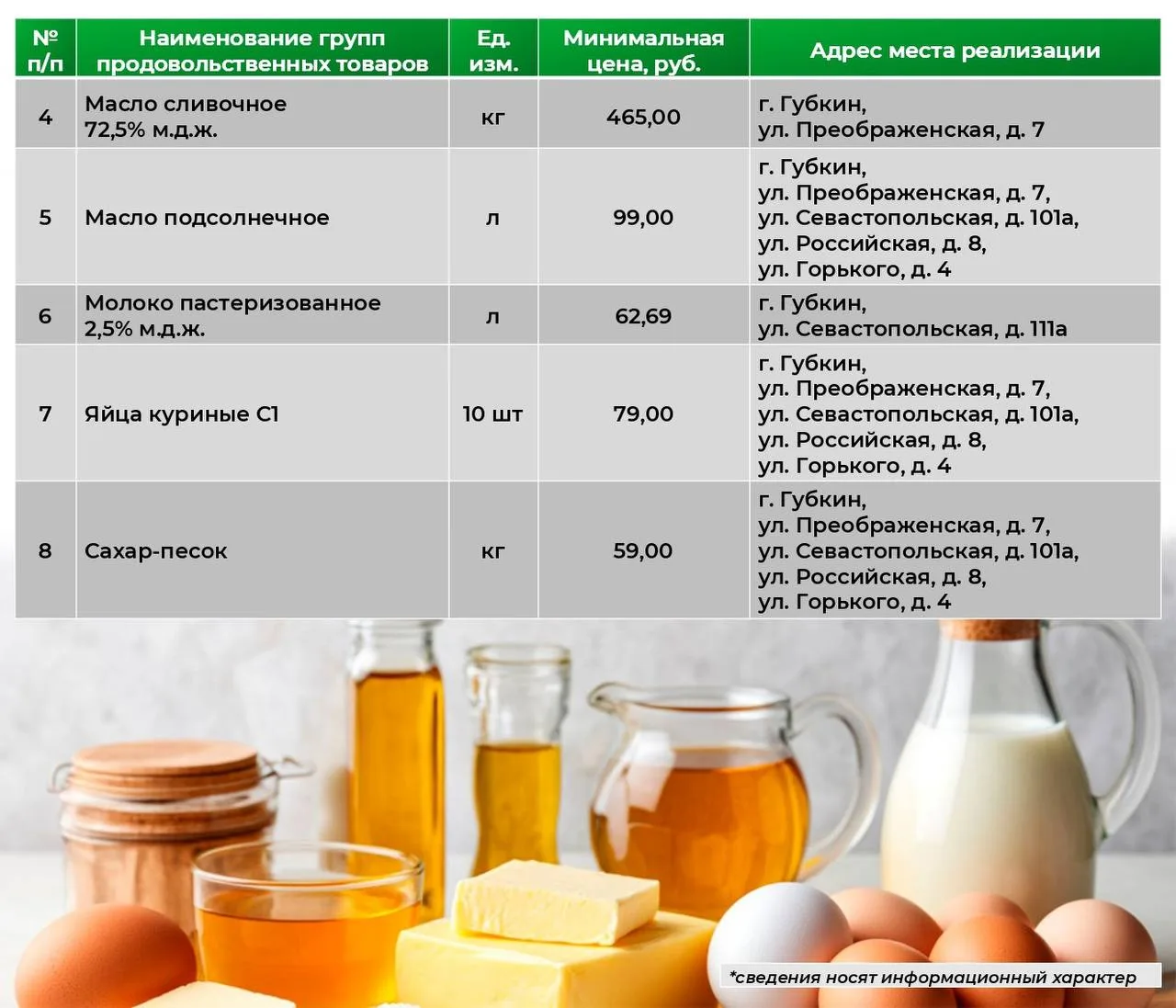 Глава администрации округа Василий Голиков опубликовал информацию о ценах и местах реализации наиболее доступных продуктов из потребительской корзины в Губкине