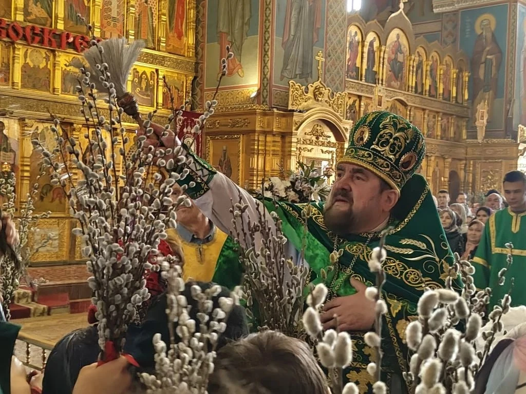 Позднюю литургию возглавил настоятель собора, протоиерей Евгений Сапсай. В своей проповеди отец Евгений поздравил прихожан с двунадесятым праздником — Входом Господним в Иерусалим — и призвал с молитвой и трепетом отнестись к каждому дню грядущей Страстной седмицы.