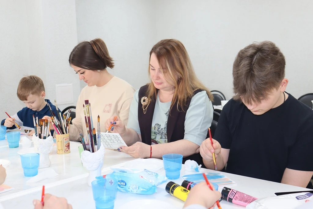 В Комплексном центре социального обслуживания населения художник-мастер, преподаватель и волонтёр Татьяна Полухина помогла семьям с детьми создать уникальные картины на холсте. С безграничным интересом участники осваивали новую для них технику — рисование акриловыми красками.