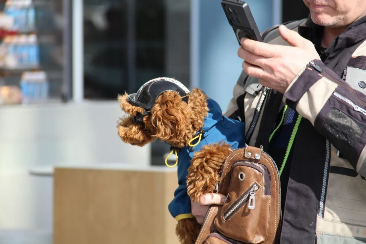 На байкера, который перевозил собаку в мотошлеме и защитных очках, автоинспекторы обратили внимание, когда проводили профилактические мероприятия на дорогах региона в прошедшие выходные.