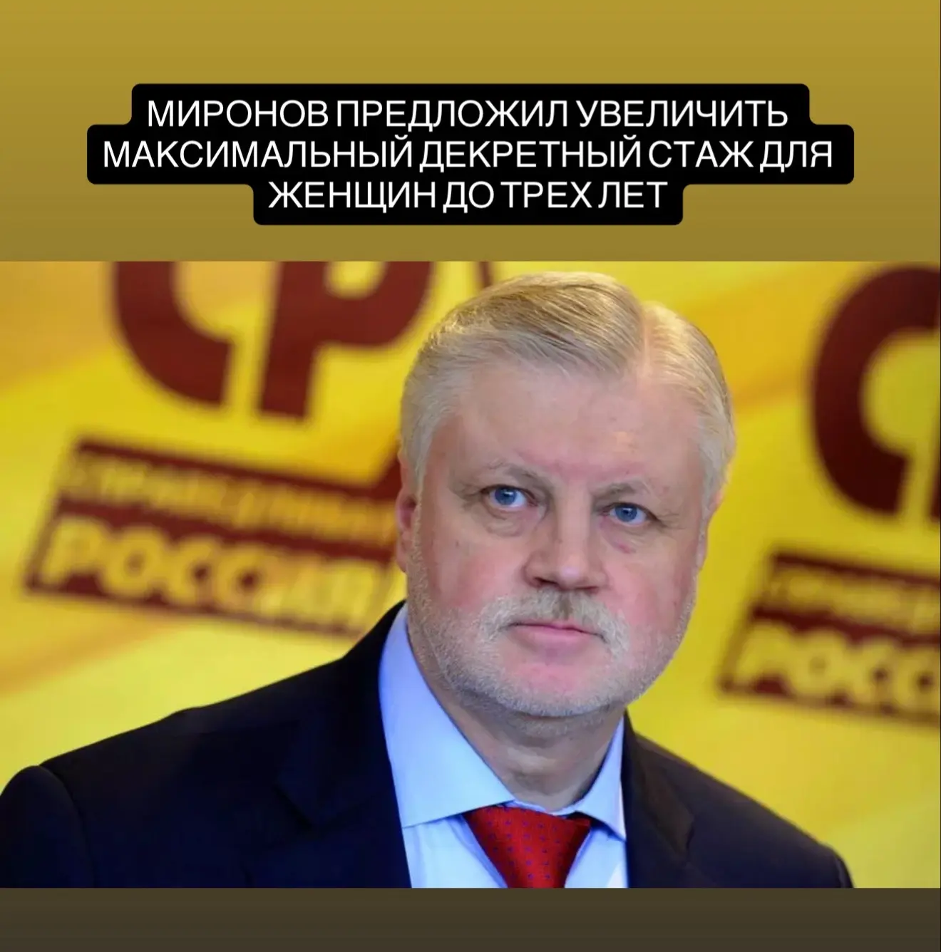 Лидер партии «Справедливая Россия» Сергей Миронов предложил засчитывать в пенсионный стаж весь период декретного отпуска по уходу за ребёнком — до трёх лет вместо нынешних полутора. По его словам, многие матери не готовы возвращаться к работе раньше и не должны из-за этого терять часть стажа. Эта инициатива, по его словам, уже направлялась в правительство и получила поддержку со стороны молодых мам.