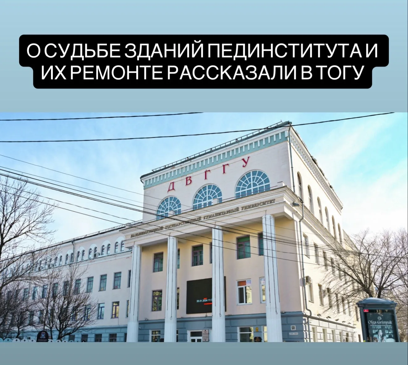 В ТОГУ сообщили, что в конце 2025 года началось комплексное обследование имущественного комплекса вуза. По нескольким корпусам экспертиза уже завершена, а по зданию на Карла Маркса, вызывающему наибольшее беспокойство, работы находятся на финальной стадии — подрядчик готовит итоговый отчет, который должны представить к середине мая 2026 года.