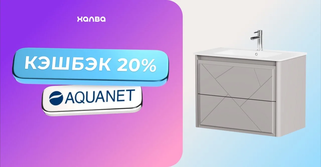 Если давно присматриваете новую сантехнику и стильную мебель для ванной комнаты, самое время приобрести их с выгодой. В Aquanet — кэшбэк 20% на первую покупку!