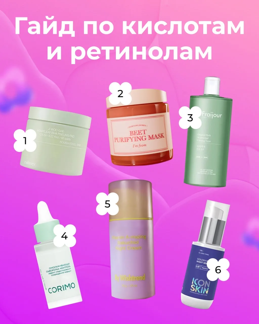 Летом мы выбирали лёгкие крем-гели, а осенью, когда солнце становится мягче, можно доставать более серьёзные баночки. Ловите гайд по кислотам и ретинолу — эти активы запускают обновления клеток и улучшают состояние кожи 🧴🧖🏻♀️
