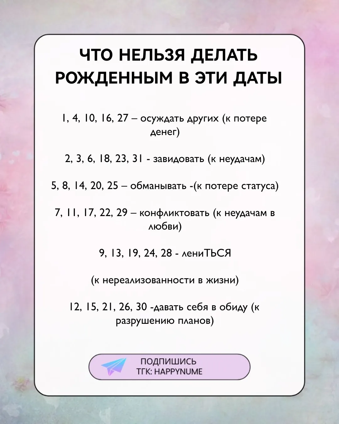 ❌ Никогда не берите в долг: 13, 14, 16, 19 числа любого месяца (в так называемые кармические даты\числа). Иначе долг останется с вами надолго и вы сольете свою денежную энергию.