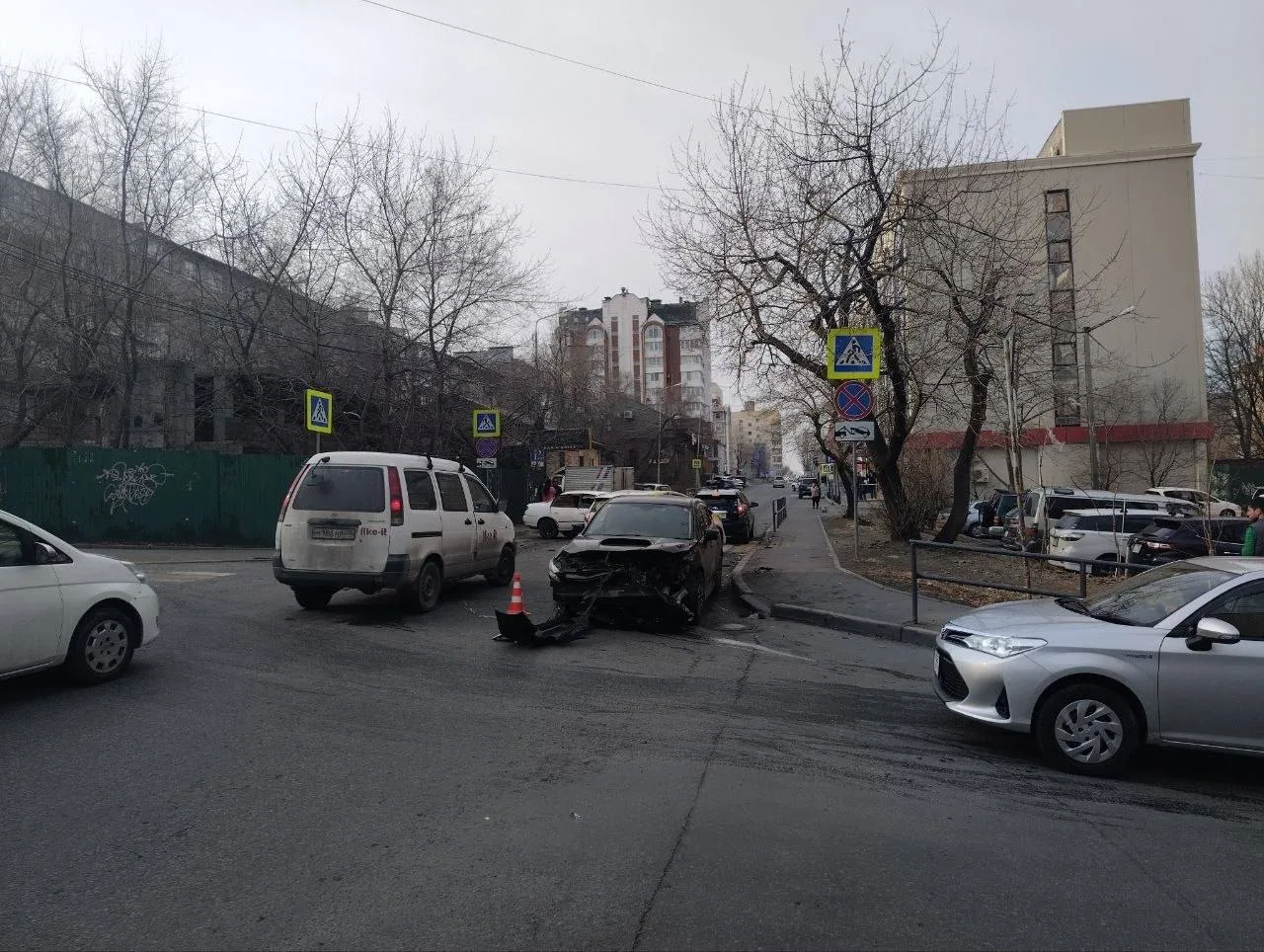 Во Владивостоке на перекрёстке улиц Бестужева и Захарова произошло серьёзное лобовое ДТП.