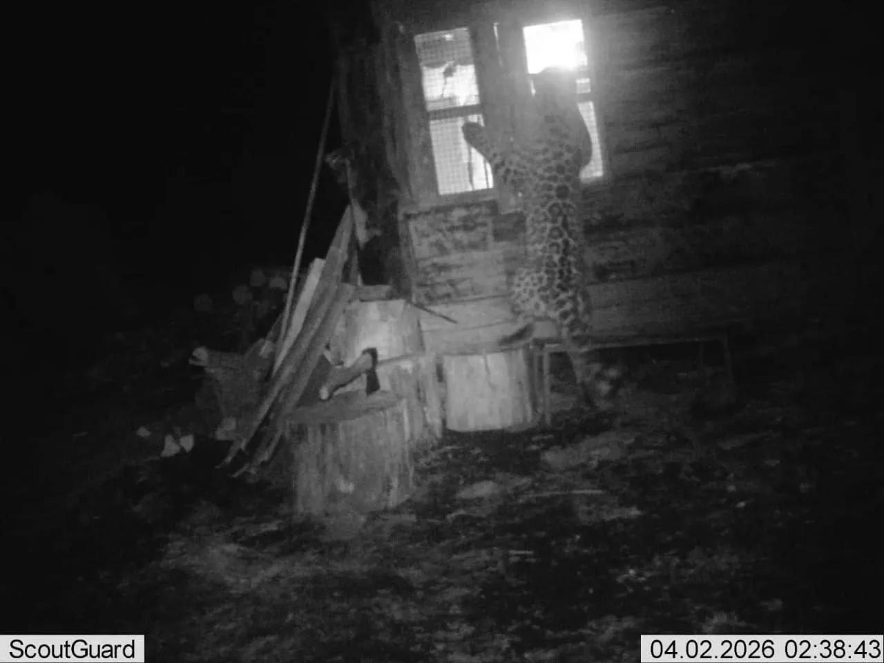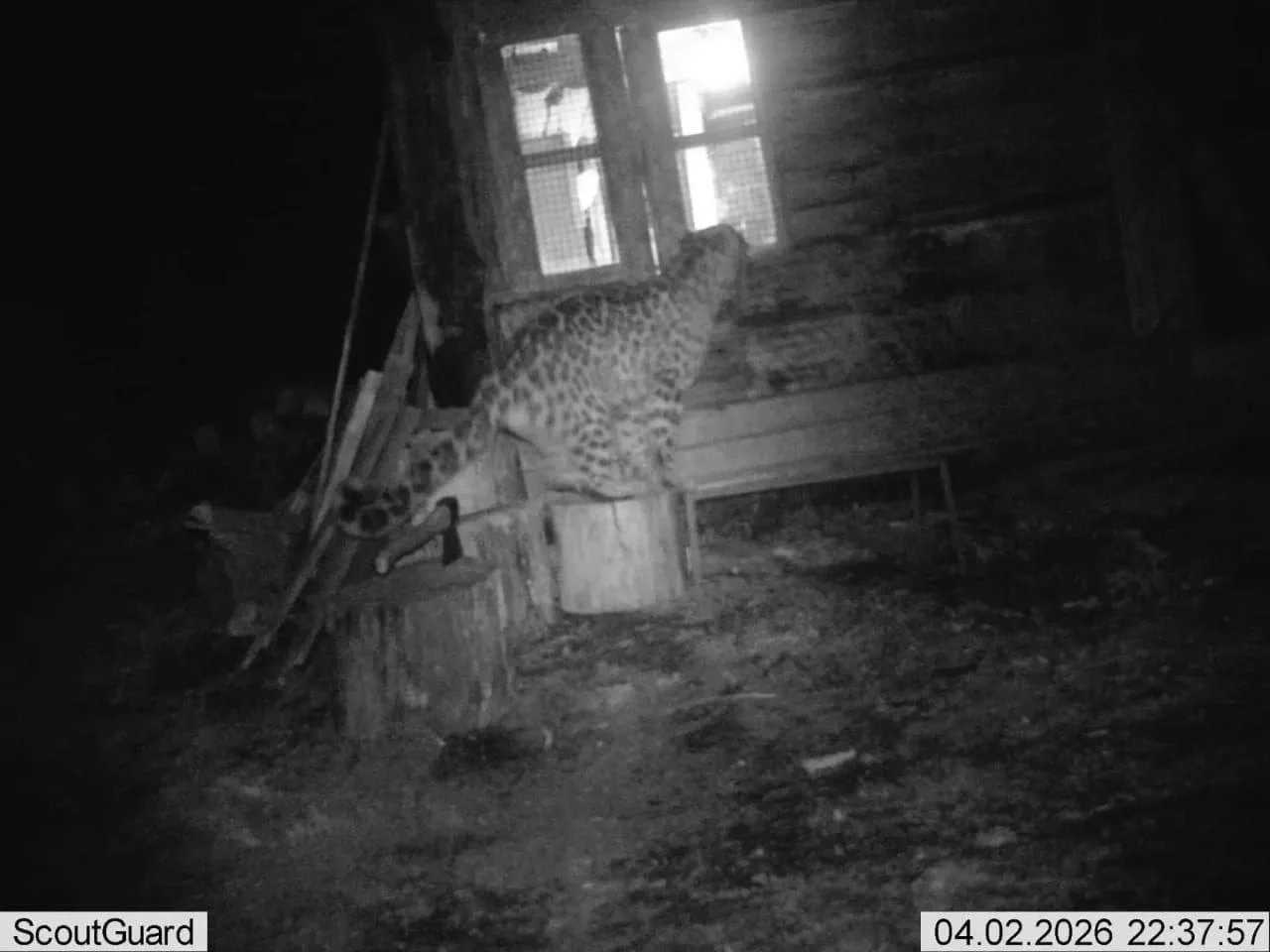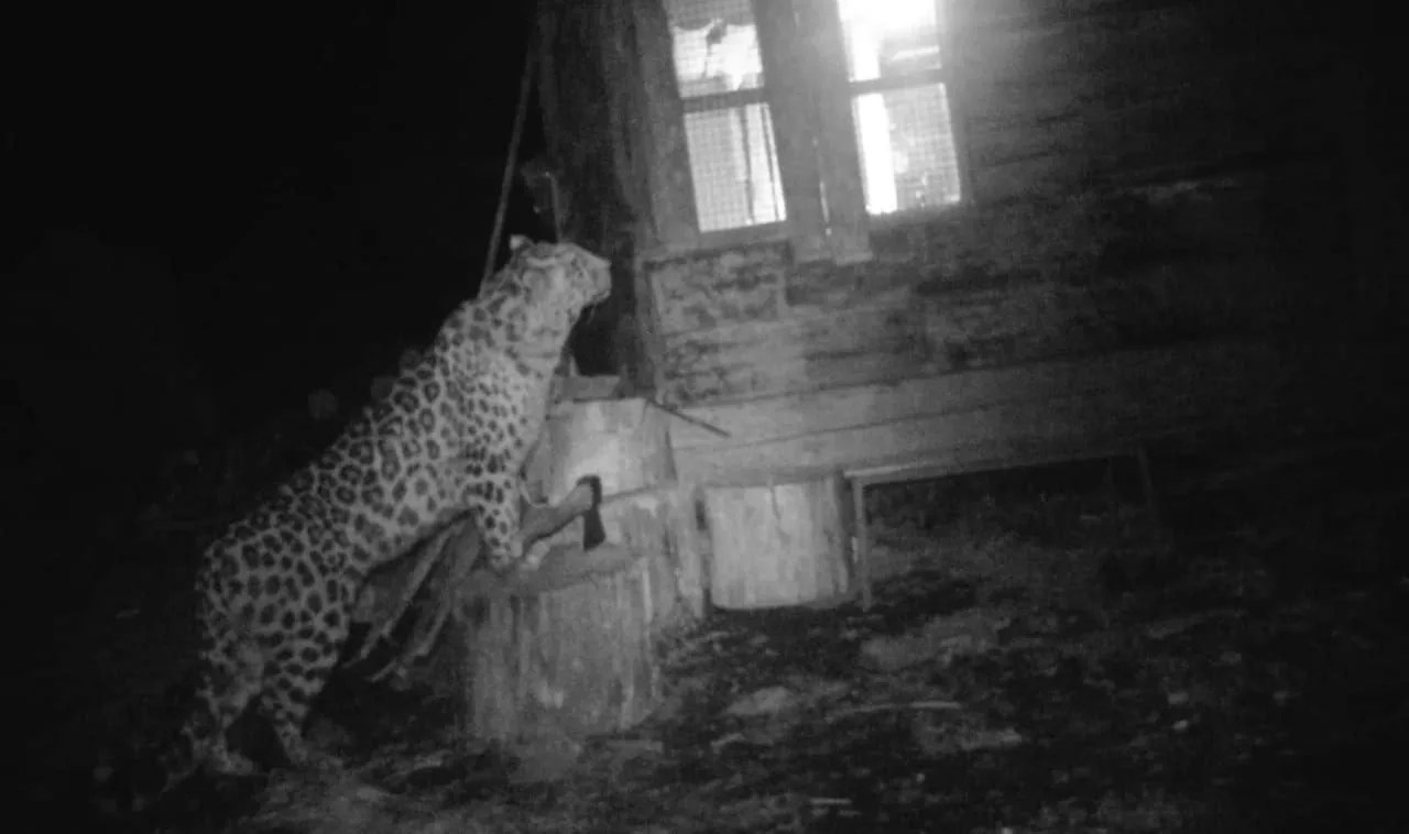 В Приморье в Хасанском округе ночью камера зафиксировала необычного визитёра — леопард сначала попытался заглянуть к людям в дом через окно.