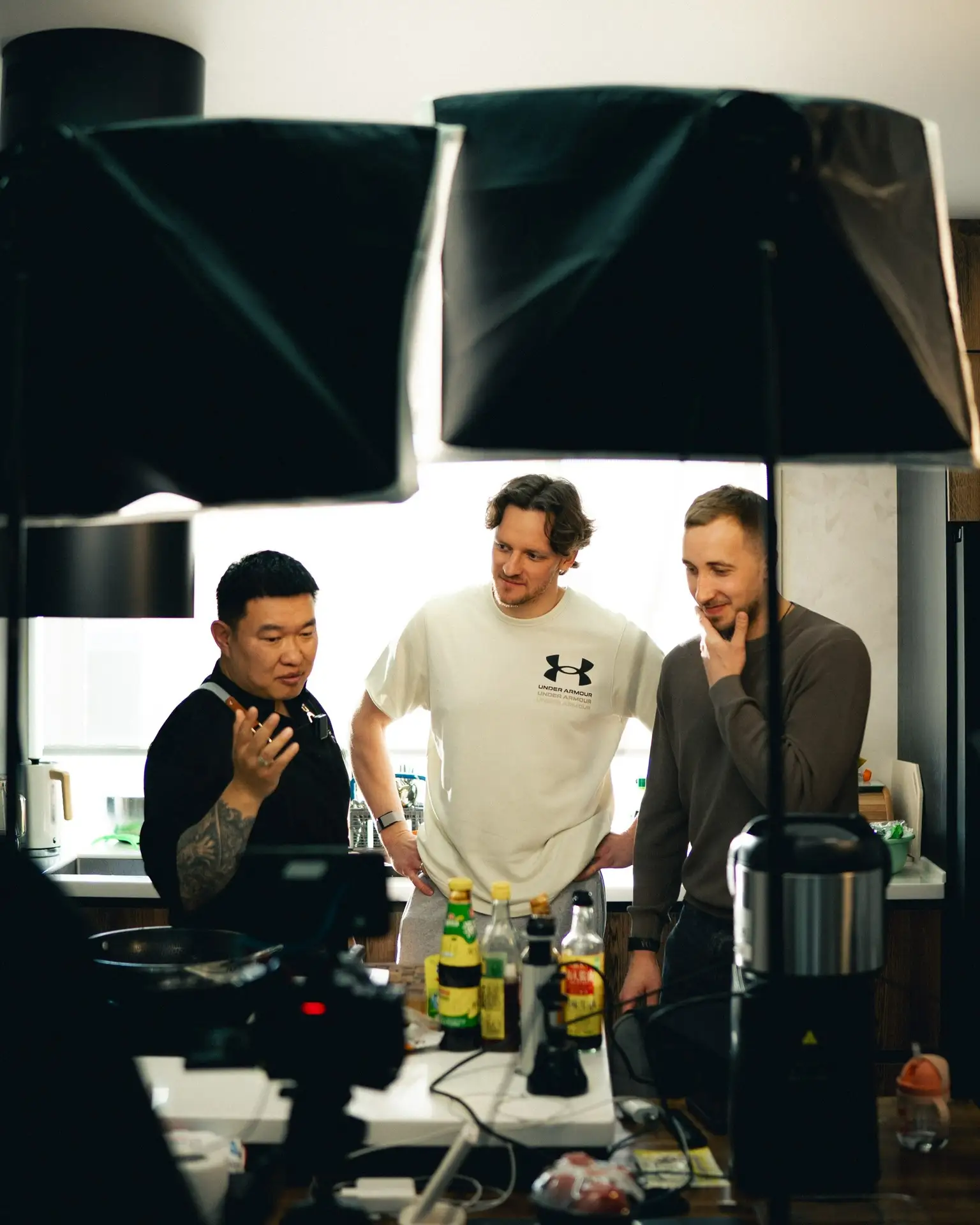 🍖 Мистер Фей, Максим Дорожко и Евгений Грачёв готовят рёбрышки. А для моральной поддержки пригласили Кирилла Петькова.