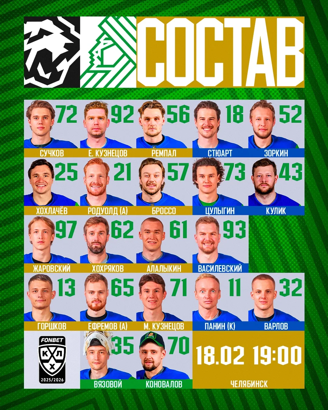 Наш состав на игру с «Трактором», в нём много изменений 👀