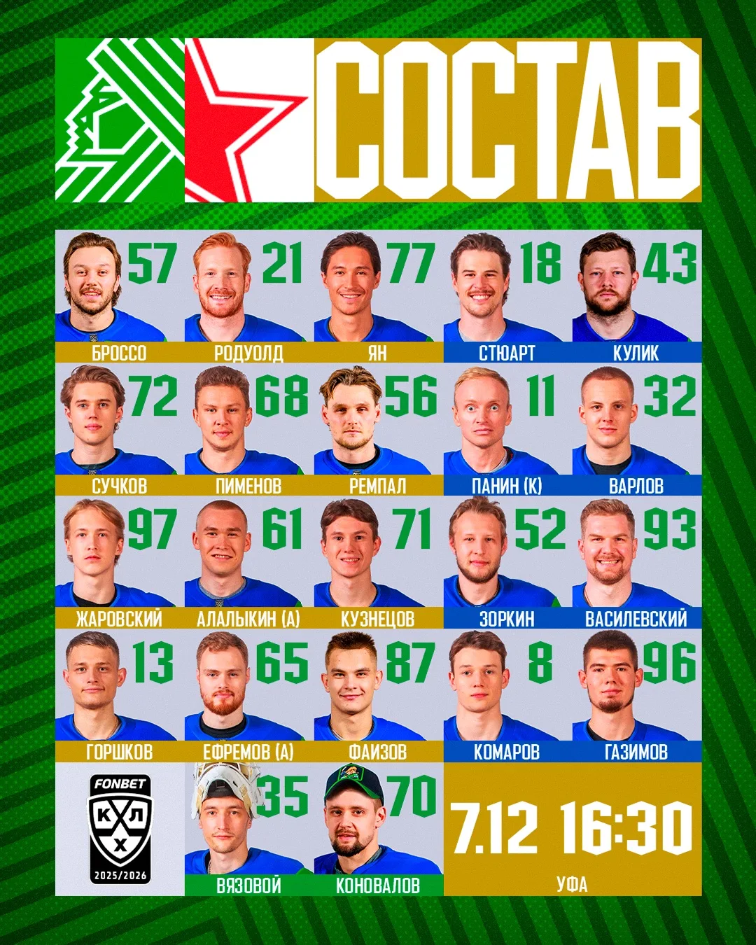 18 матчей, 14 очков, 7 голов – это Девин Броссо после перехода в «Салават Юлаев» 🔝