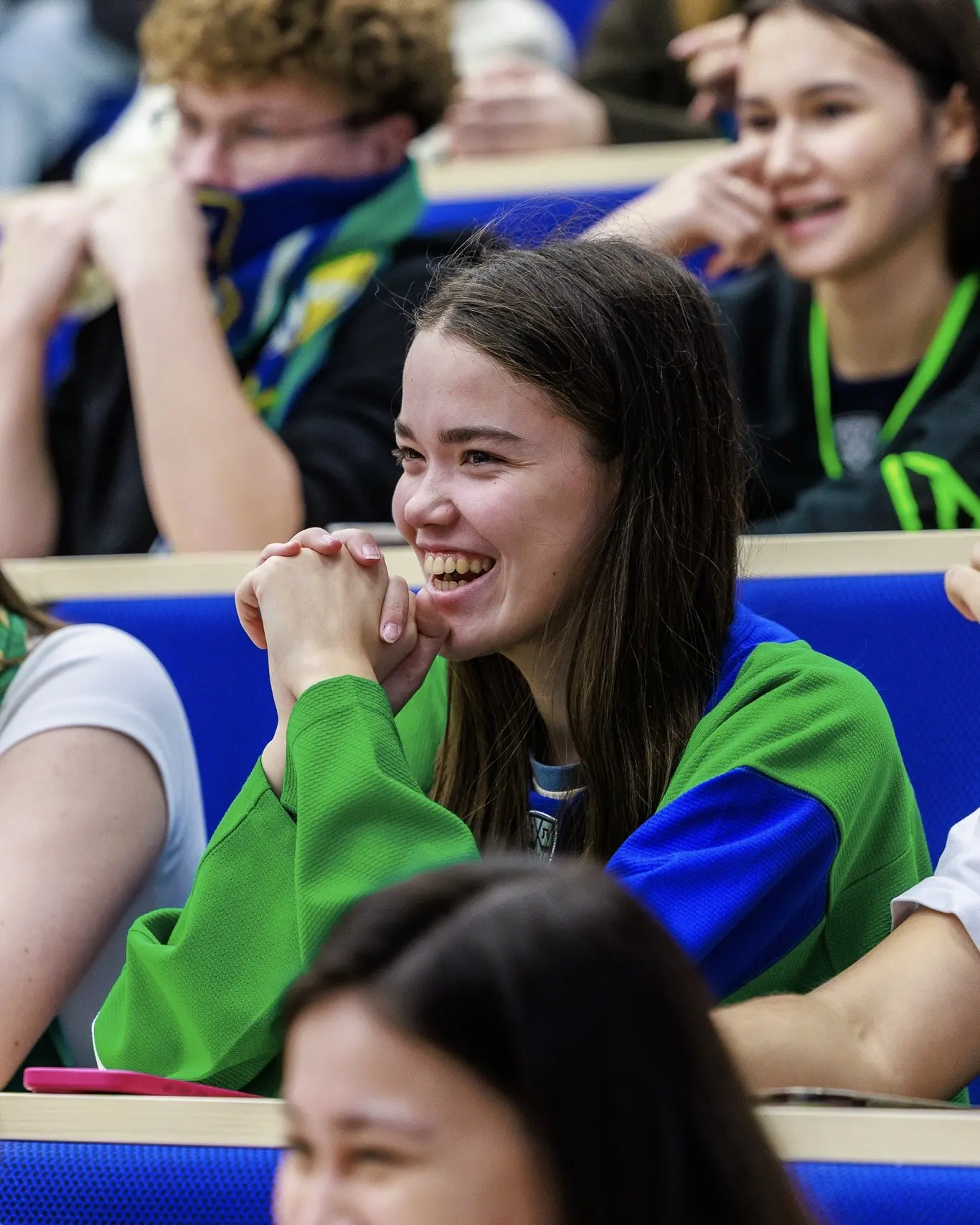Наши хоккеисты пообщались со студентами и рассказали о хоккее💚