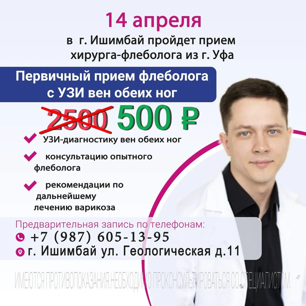 ❗14 апреля в г.Ишимбай пройдет прием хирурга-флеболога из Уфы