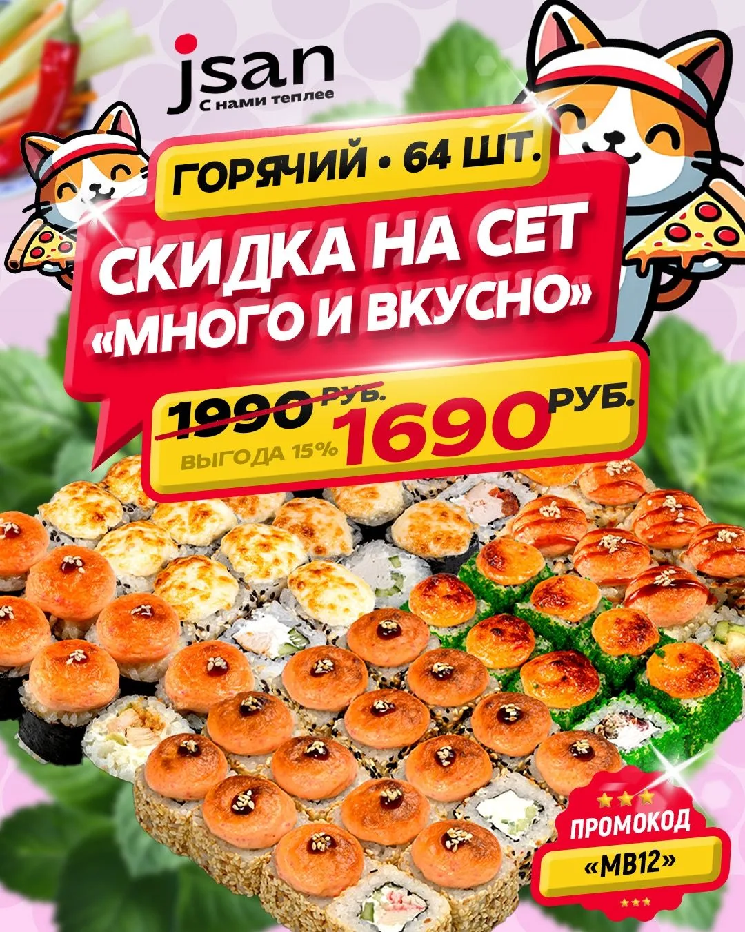 1) Горячий сет «Много и вкусно» (64 шт.)
