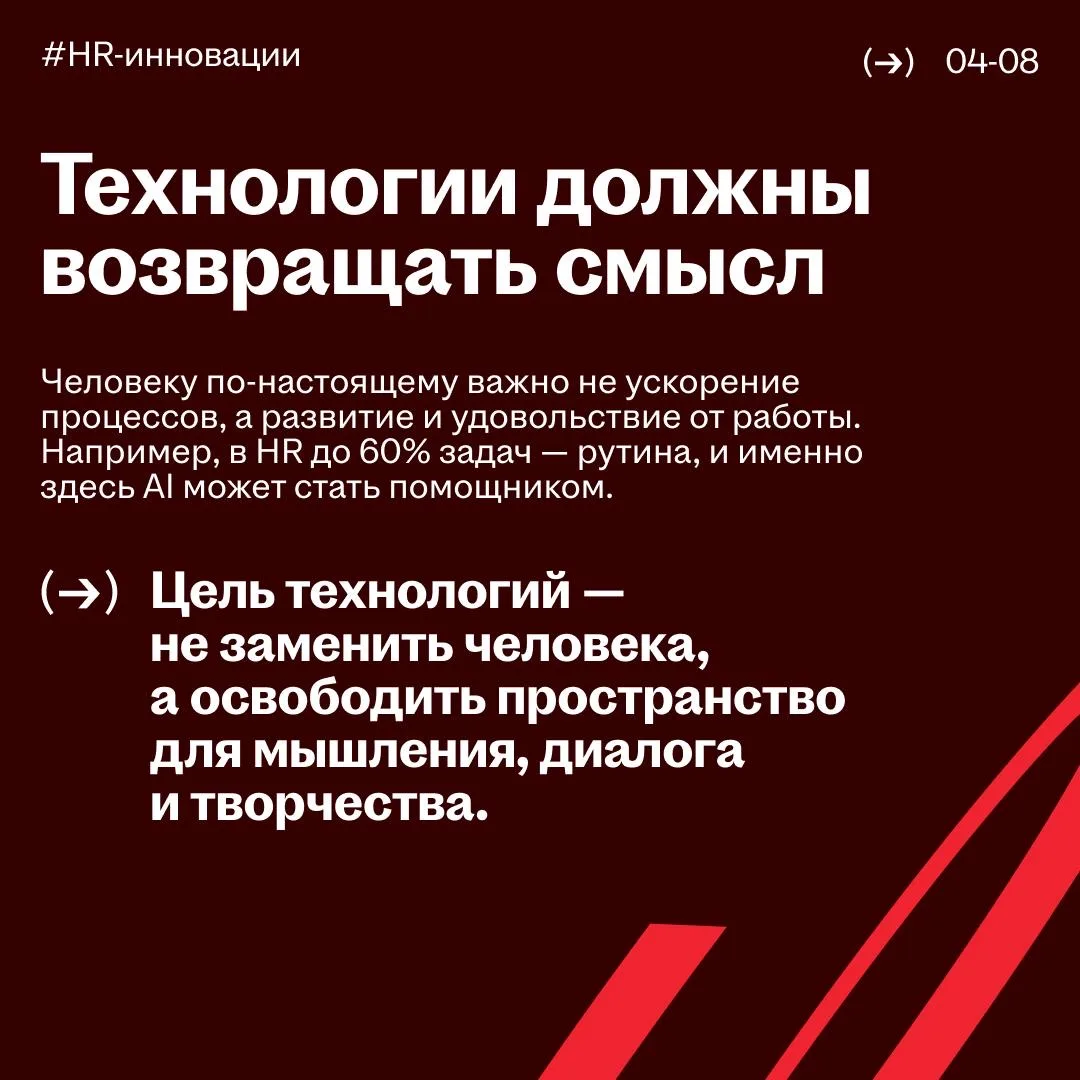 Спикеры обсудили, как адаптироваться к неопределённости, зачем нам AI и почему «смысл» становится новой метрикой эффективности. Хайлайты дискуссии собрали в карточках, листайте🔼