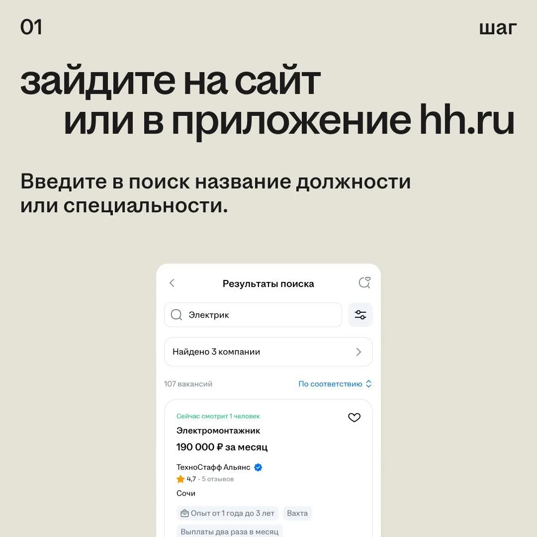 Хорошо, если вы «на все руки мастер», но работодателю нужно чёткое понимание, чем вы занимаетесь. Расскажите о своих навыках в несколько строк через упрощённую анкету hh.ru. Например, отметьте, что у вас есть удостоверение электрика или опыт в электротехнических работах.