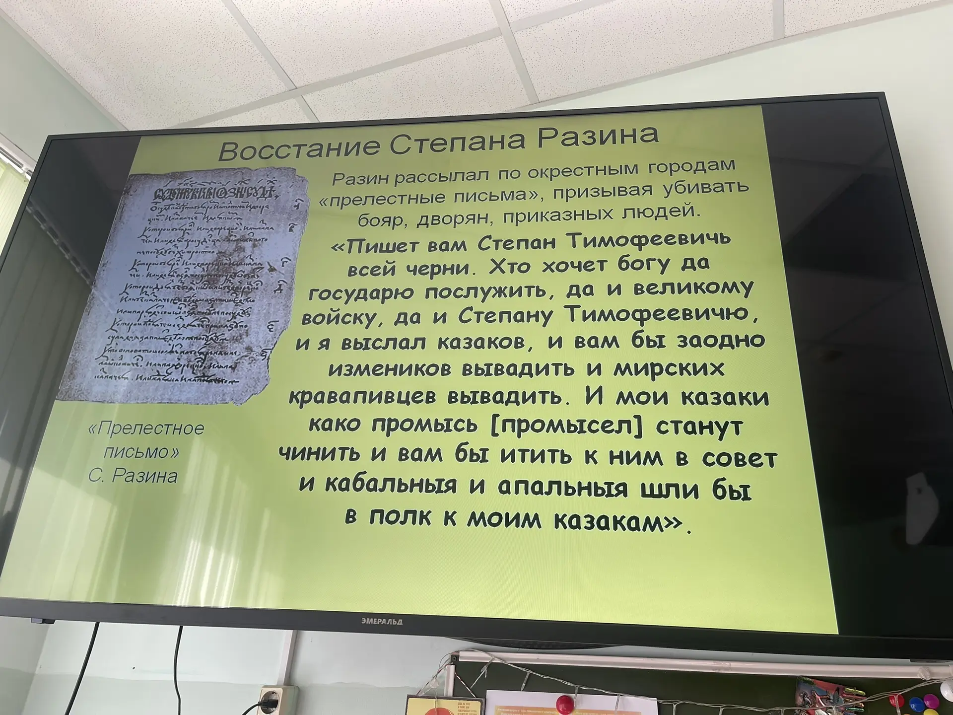 🔹Это мы с 7 кл учили восстание Степана Разина и я им показывала его «прелестные письма», которыми он зазывал себе крестьян.