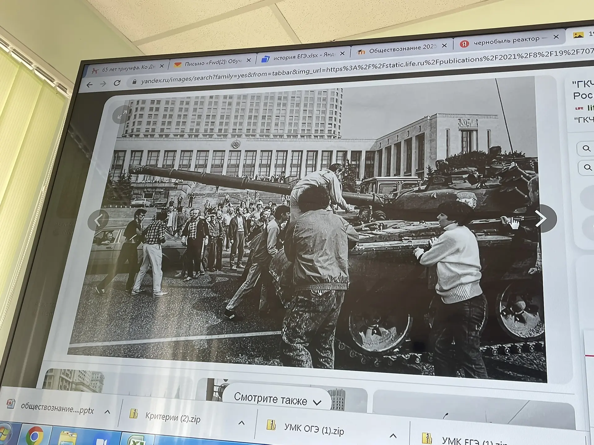 Сегодня с 11 классом (база) учили распад СССР. Показывала им эти фото с путча 19 августа 1991 г., где люди голыми руками танки останавливали.