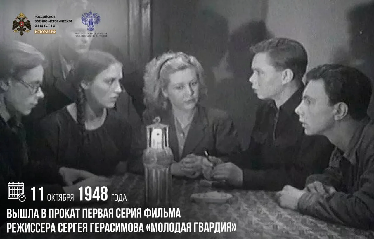 11 октября 1948 года вышла в прокат первая серия фильма режиссера Сергея Герасимова «Молодая гвардия»