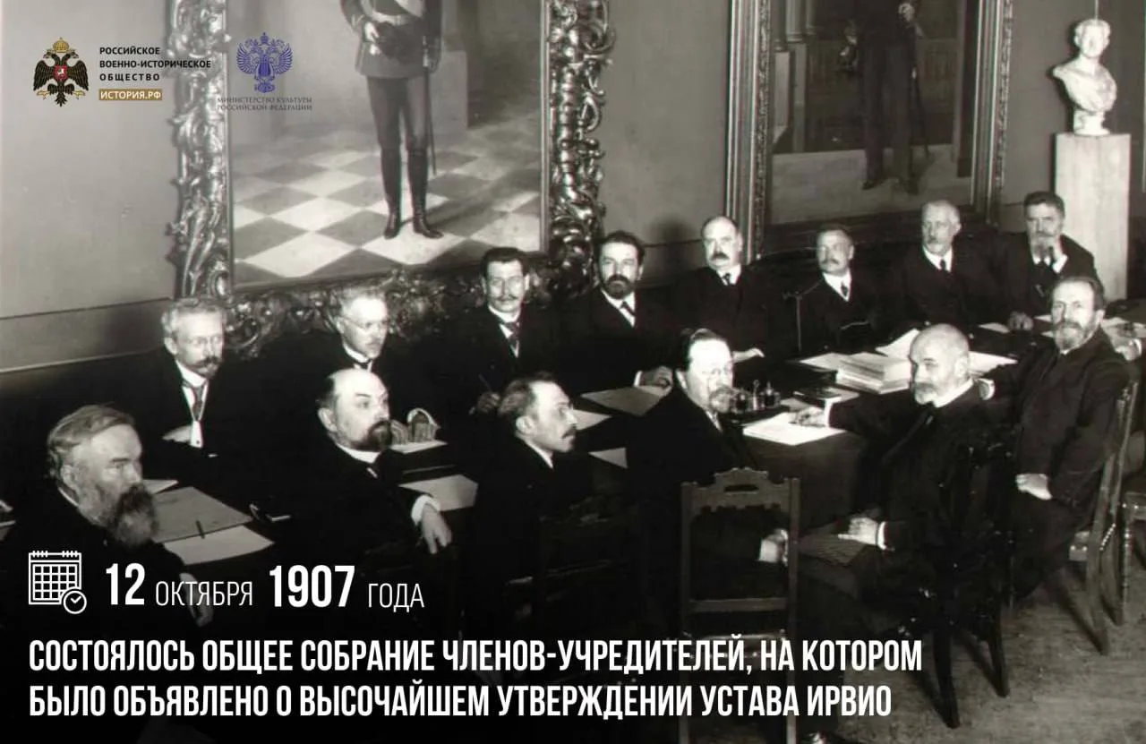12 октября 1907 года состоялось общее собрание членов-учредителей, на котором было объявлено о Высочайшем утверждении Устава ИРВИО