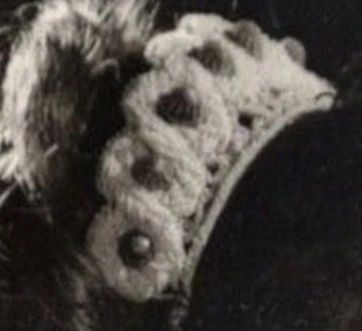 А вот украшение, напоминающее знаменитую Владимирскую тиару великой княгини Марии Павловны, оказалось лишь стилизацией. Оригинальная диадема, вывезенная за границу во времена революции, сегодня принадлежит английской королевской семье. Это лишний раз подтверждает, что почти все сокровища, которые могли бы передаваться из поколения в поколение, были утрачены.