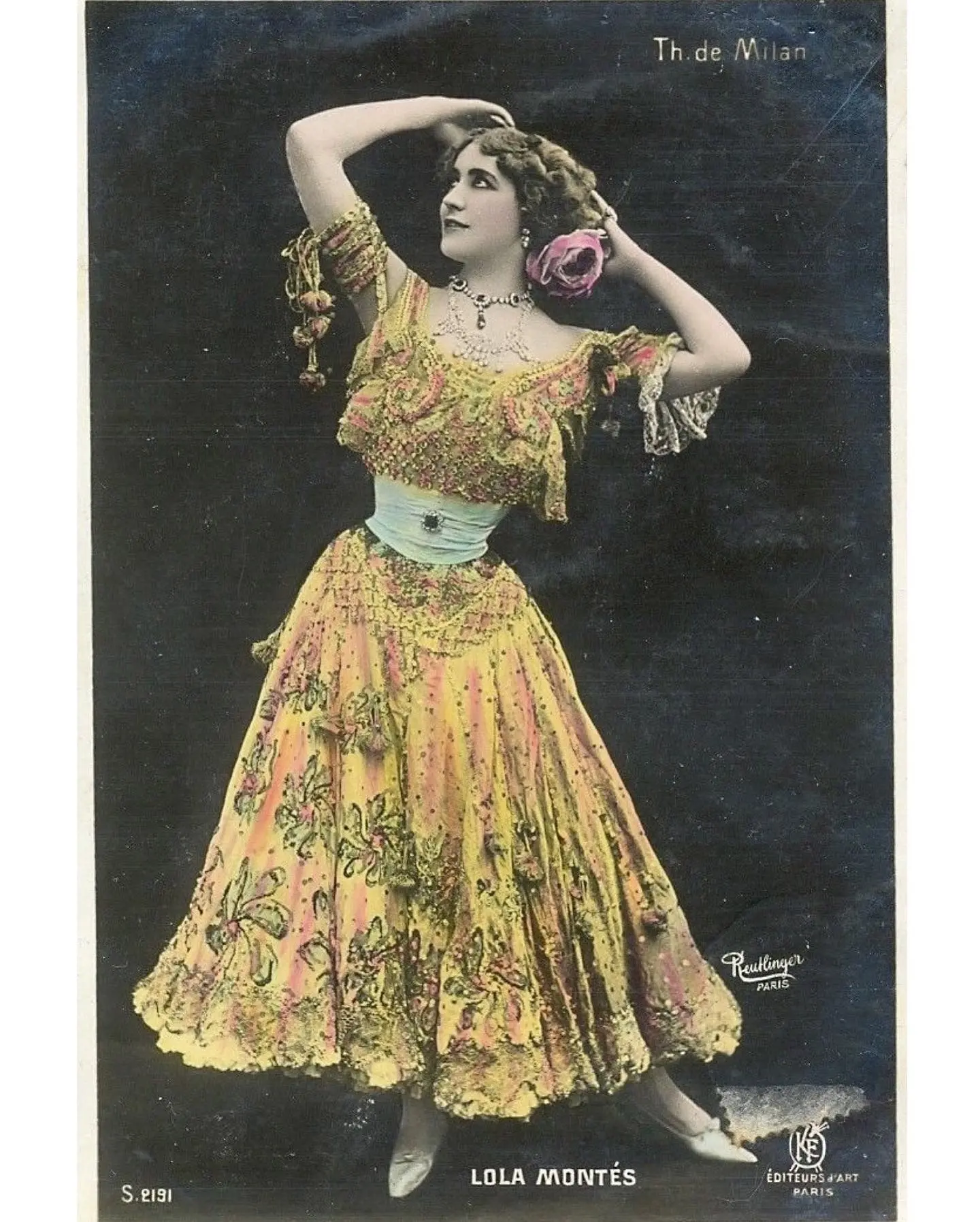 Лола появилась в жизни Людвига I в 1846 году, когда ей было всего 25 лет. На тот момент она уже была известной танцовщицей с репутацией скандалистки. Её настоящим именем было Элизабет Розанна Гилберт, и родилась она вовсе не в солнечной Испании, как утверждала, а в Ирландии, в семье офицера. Её жизнь была полна приключений с самого детства: переезд в Индию, ранняя смерть отца, воспитание у родственников в Англии, а затем — побег с британским лейтенантом Томасом Джеймсом. Однако семейная жизнь не задалась, и вскоре Элизабет оказалась в Испании, где начала учиться танцам. Именно тогда она и стала Лолой Монтес, придумав себе новую биографию и начав выдавать себя за испанскую аристократку.