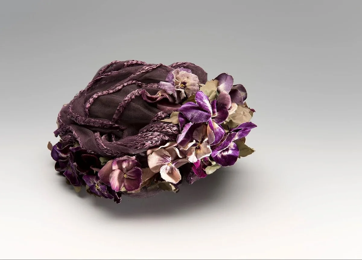 А вот веер с анютиными глазками отражает любовь императрицы к цветочным мотивам. Этот аксессуар был расписан французским художником Анри Альберти в 1890 году. Интересно, что у Марии Федоровны была и шляпка с таким же рисунком, созданная уже петербургскими мастерами.