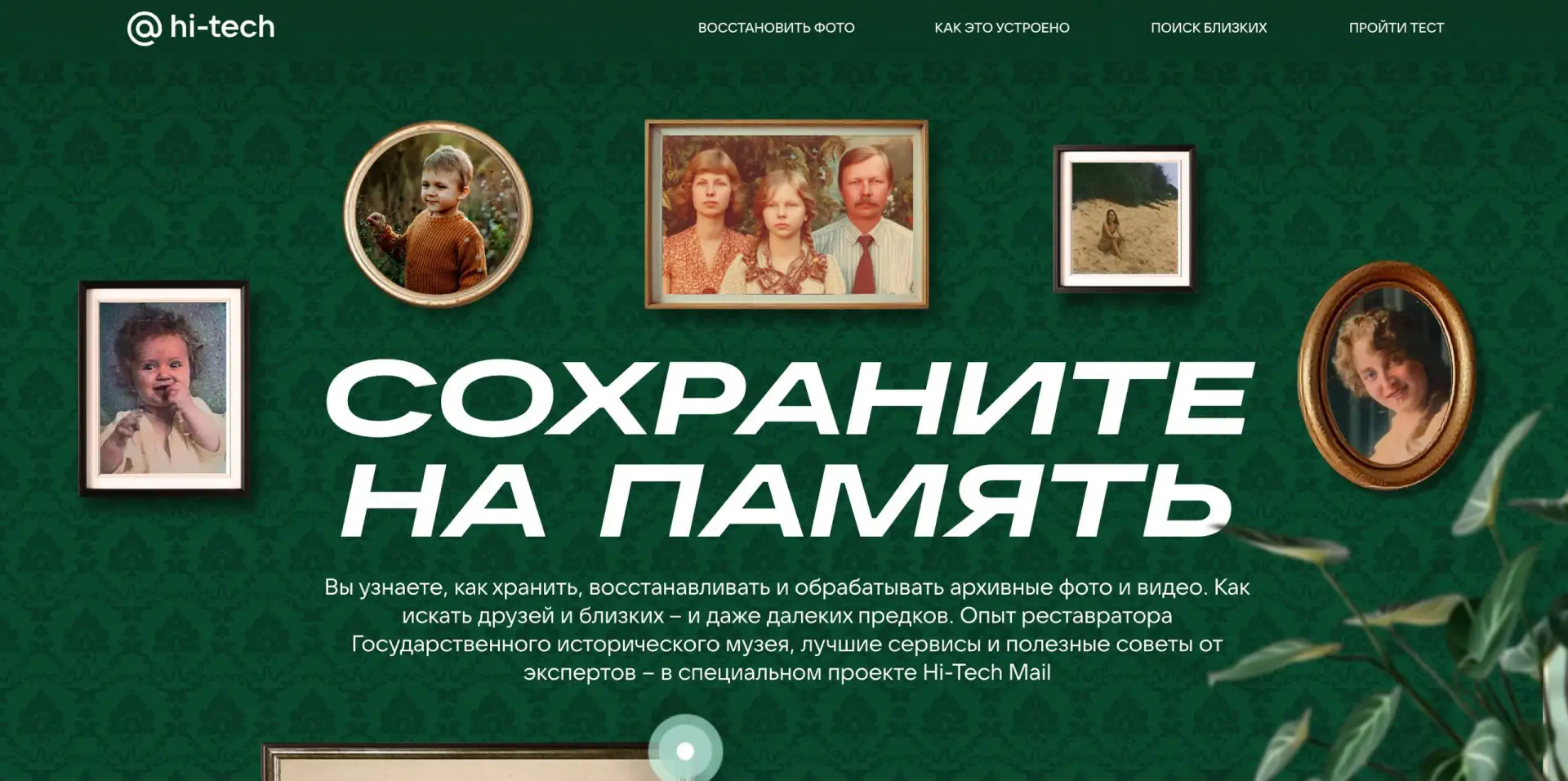 📷 Hi-Tech Mail номинирован на премию с проектом «Сохраните на память» – о том, как хранить, восстанавливать и обрабатывать архивные фото и видео, искать друзей, близких и даже далеких предков, с опытом реставратора ГИМ, полезными сервисами и советами от экспертов