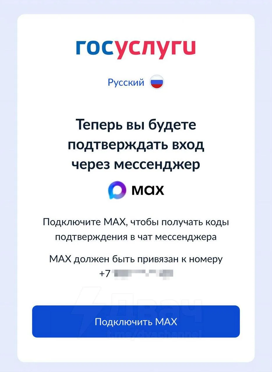 ● Если двухфакторная авторизация по SMS – ее постепенно переводят на сообщения в MAX. У многих это уже так, у кого‑то ещё нет