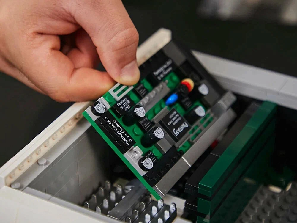 В комплекте идет монитор, мышка, клавиатура, флоппи-диск и CD. А внутри корпуса устанавливается материнка, видеокарта и радиатор. Всего 1634 детали