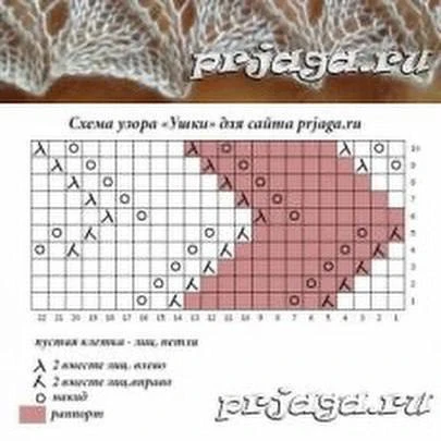 Ажурный узор «Ушки» спицами. Уровень сложности: средний. Схема вязания в вашу копилочку