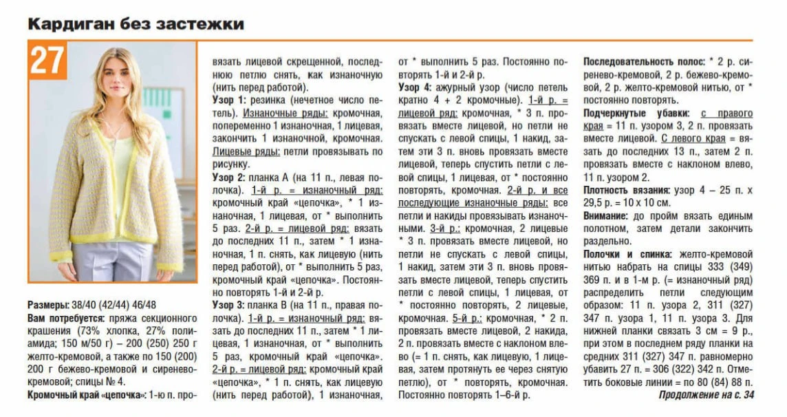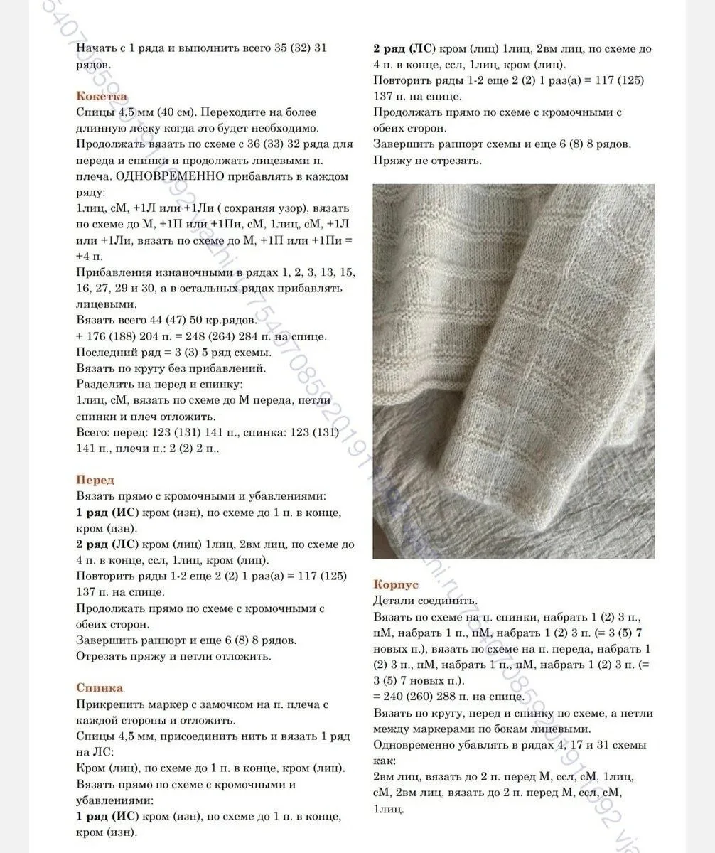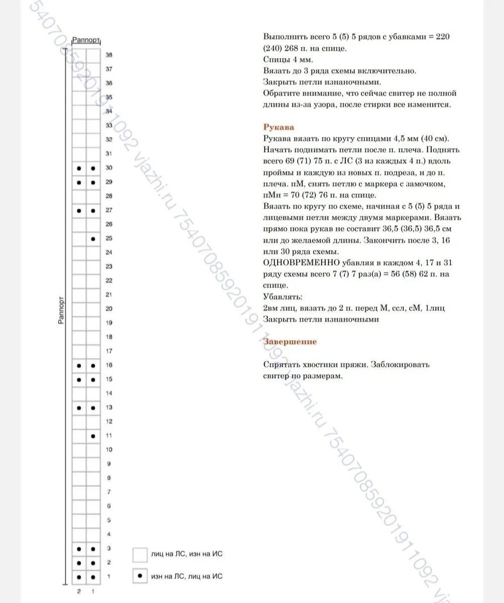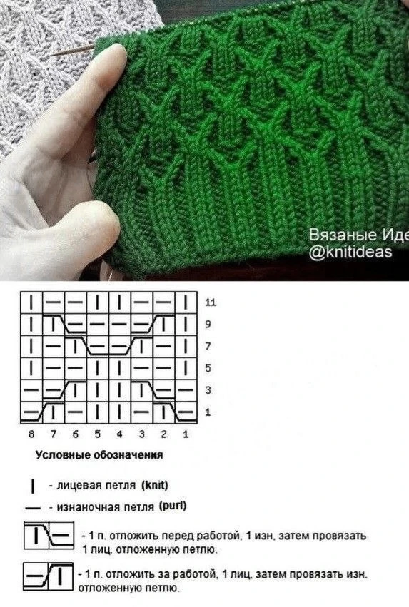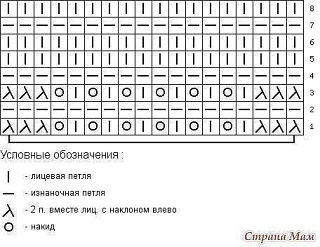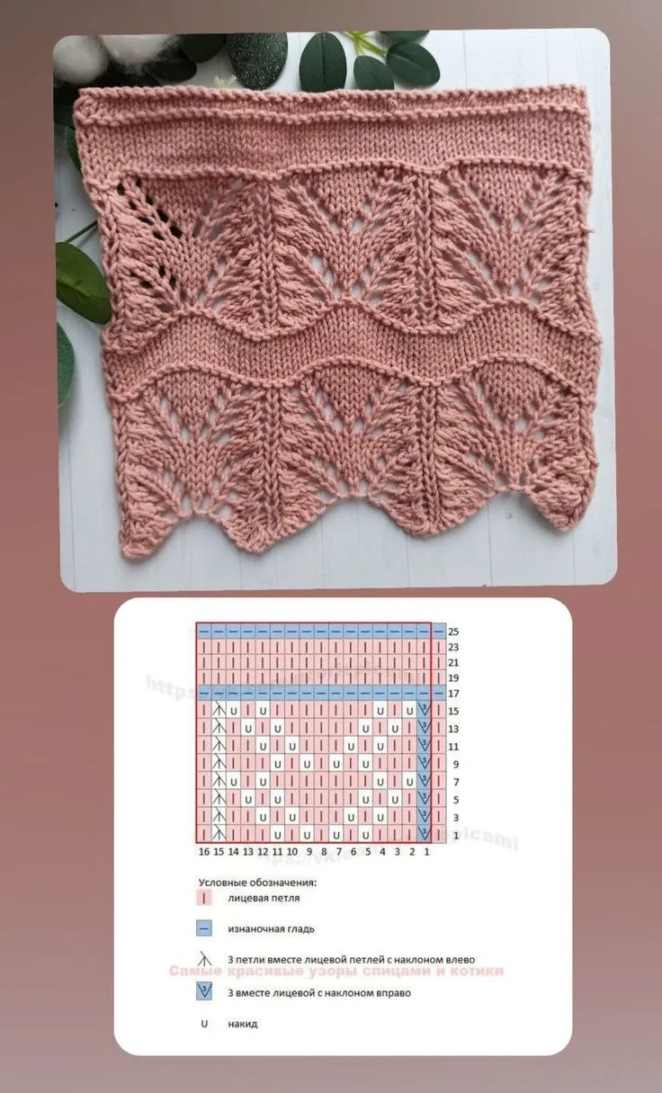 Интересный узор спицами. Уровень сложности: средний. Схема вязания в вашу копилочку
