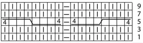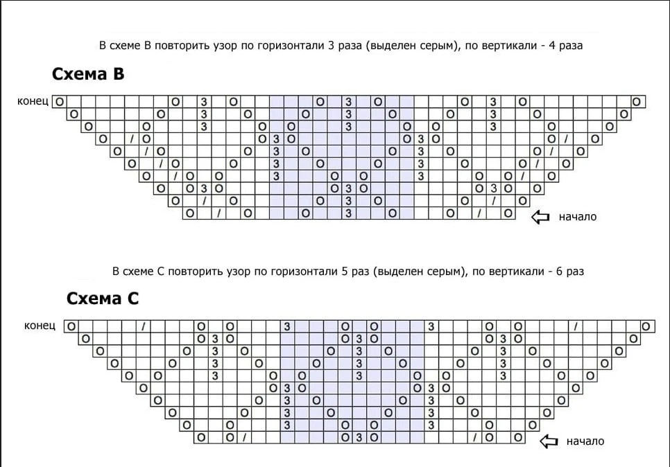 Далее продолжаем вязать, чередуя 1 и 2 ряд раппорта.