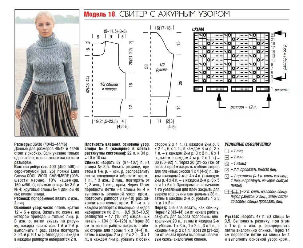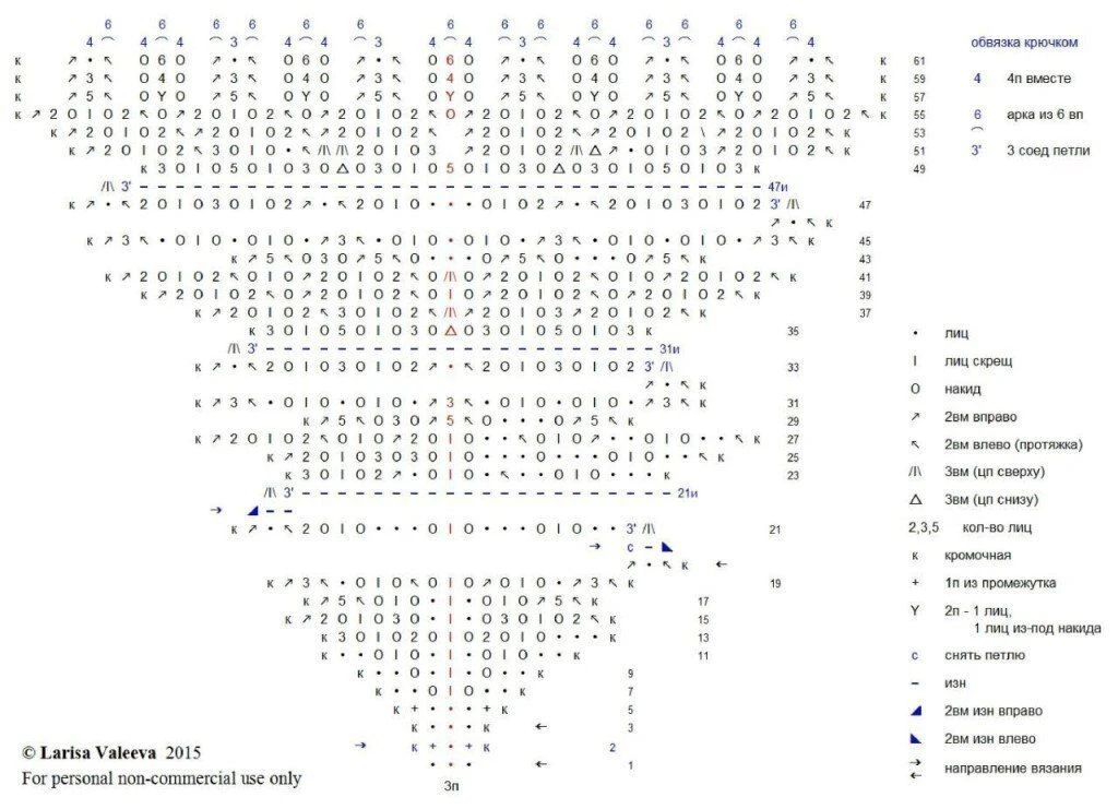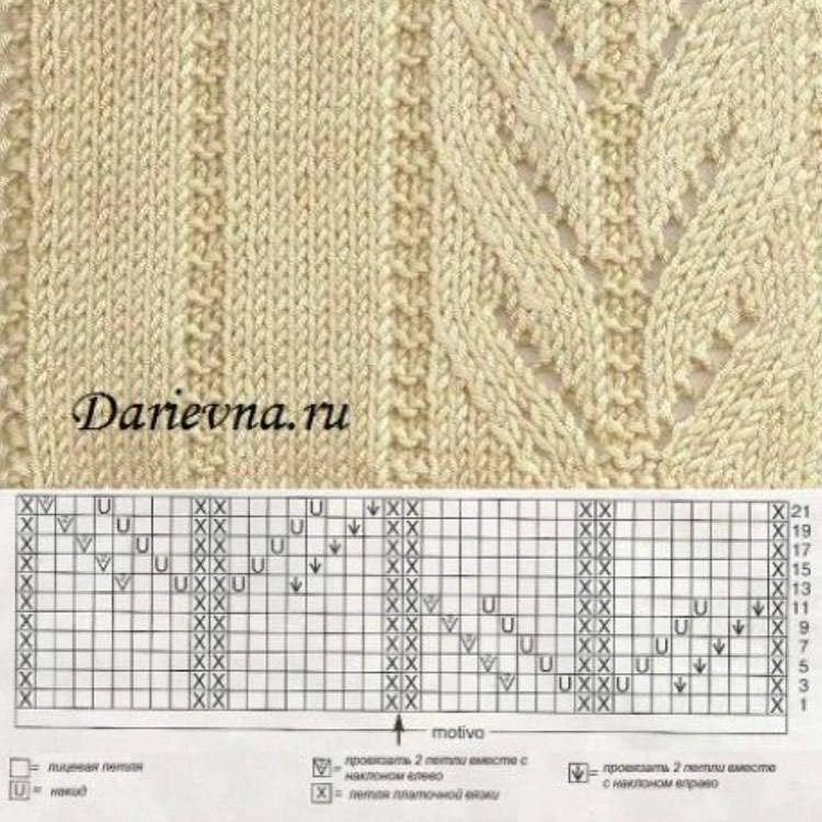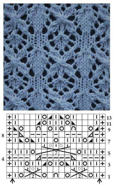 Ажурный узор спицами. Уровень сложности: средний. Схема вязания в вашу копилочку