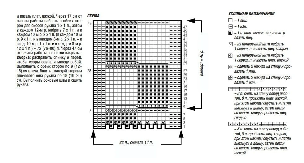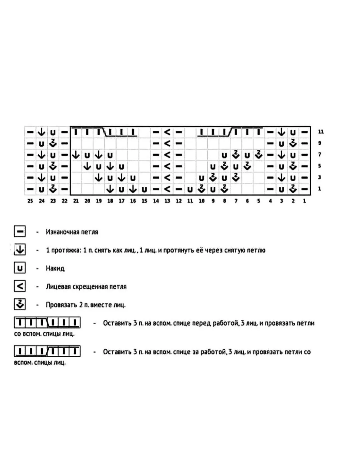 Узор с обвитыми петлями спицами. Уровень сложности: средний. Схема вязания в вашу копилочку