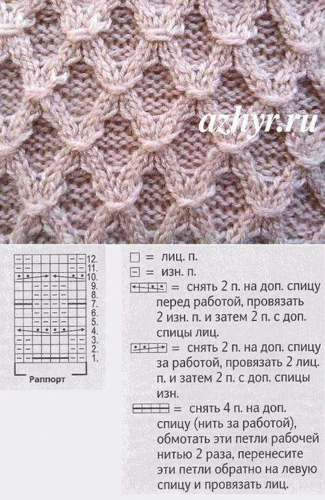Красивый узор спицами. Уровень сложности: средний. Схема вязания в вашу копилочку