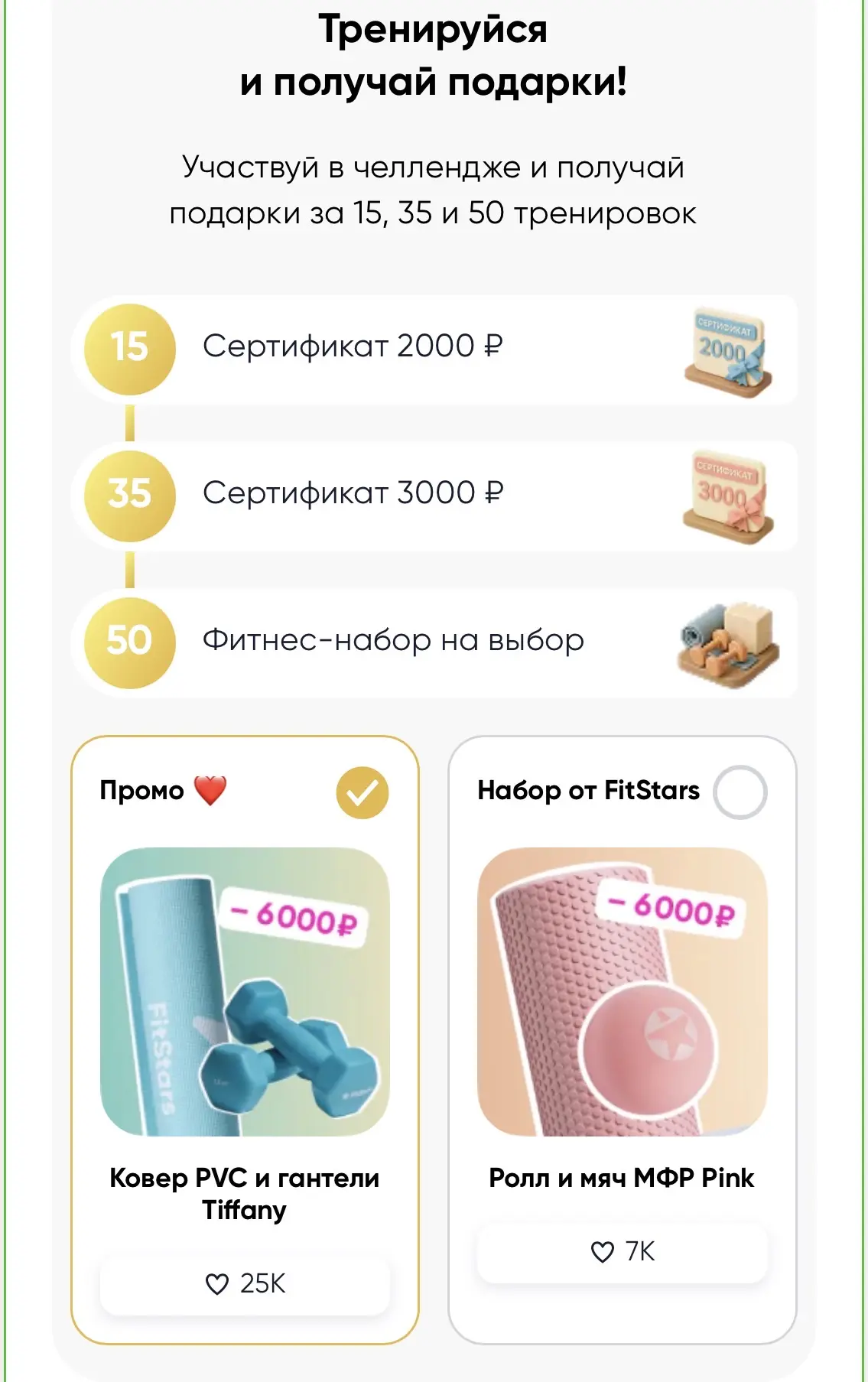 • 35 тренировок - сертификат 3000 ₽ в FitStars
