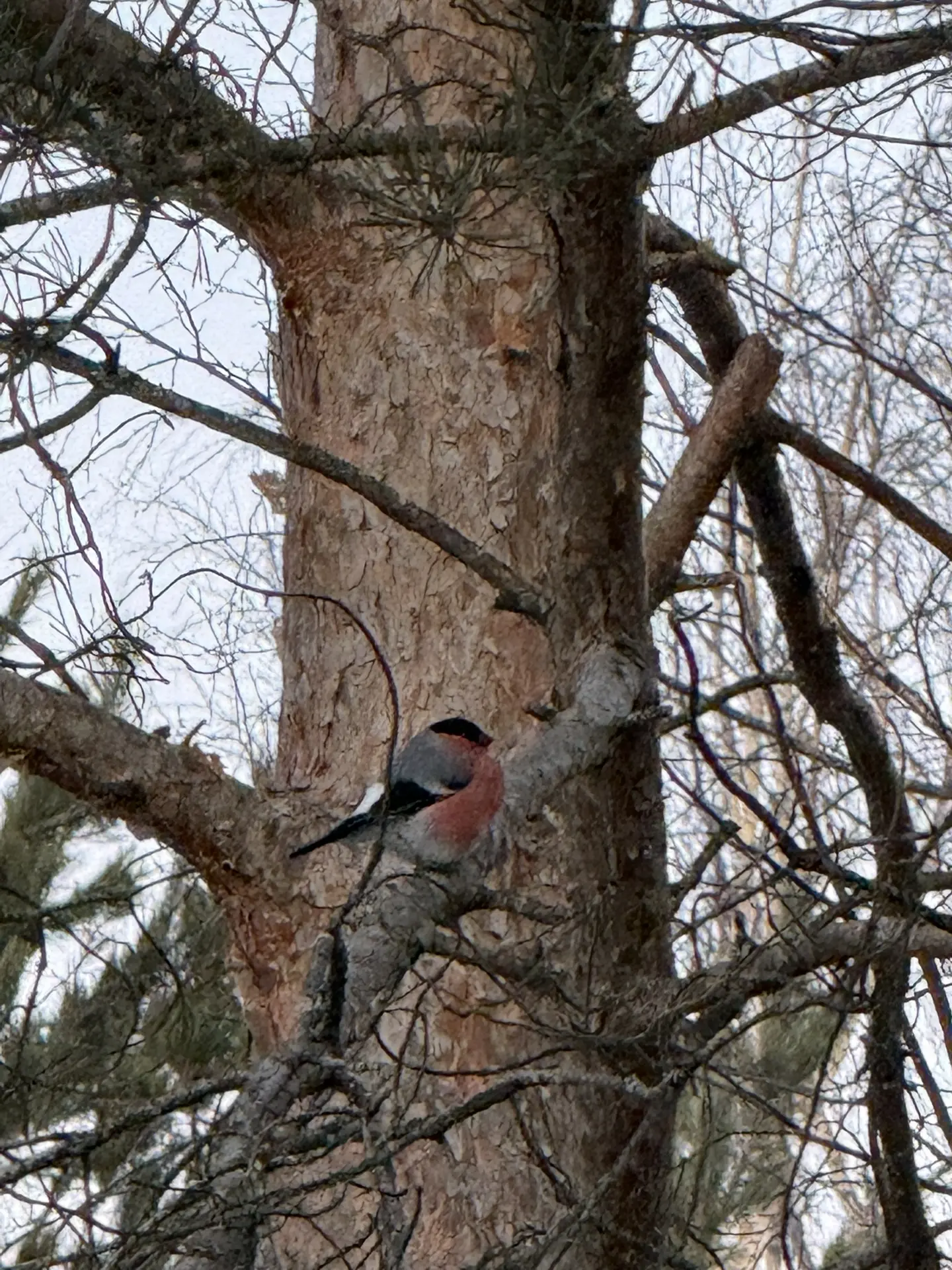 Уже хотела спасать, тк крылышко явно болело, но он взлетел, а значит все не так плохо 🥲 оставила корм в кознинке у сосны где он сидит