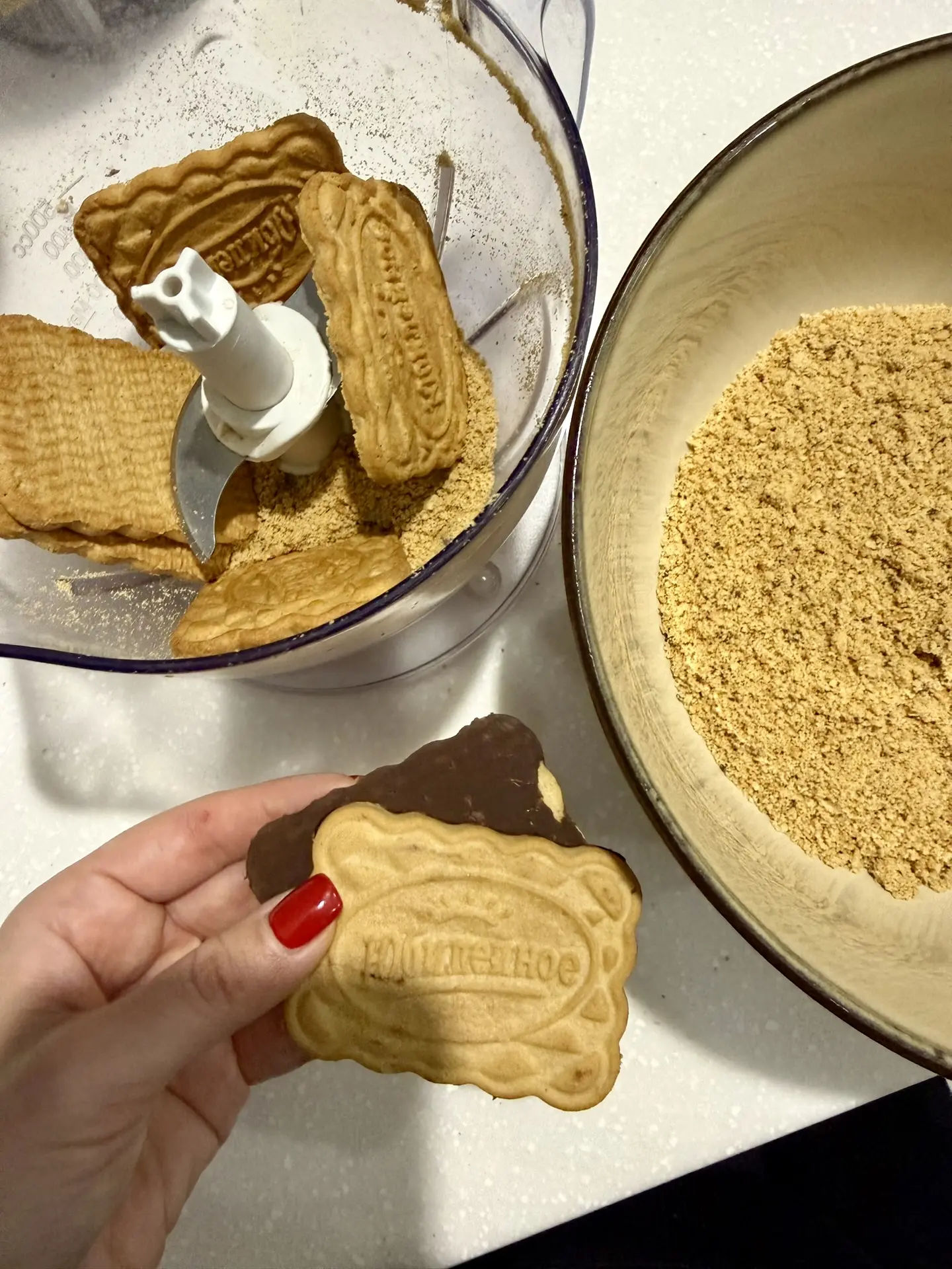 Печенье измельчить можно блендером (как у меня на фото) или через мясорубку