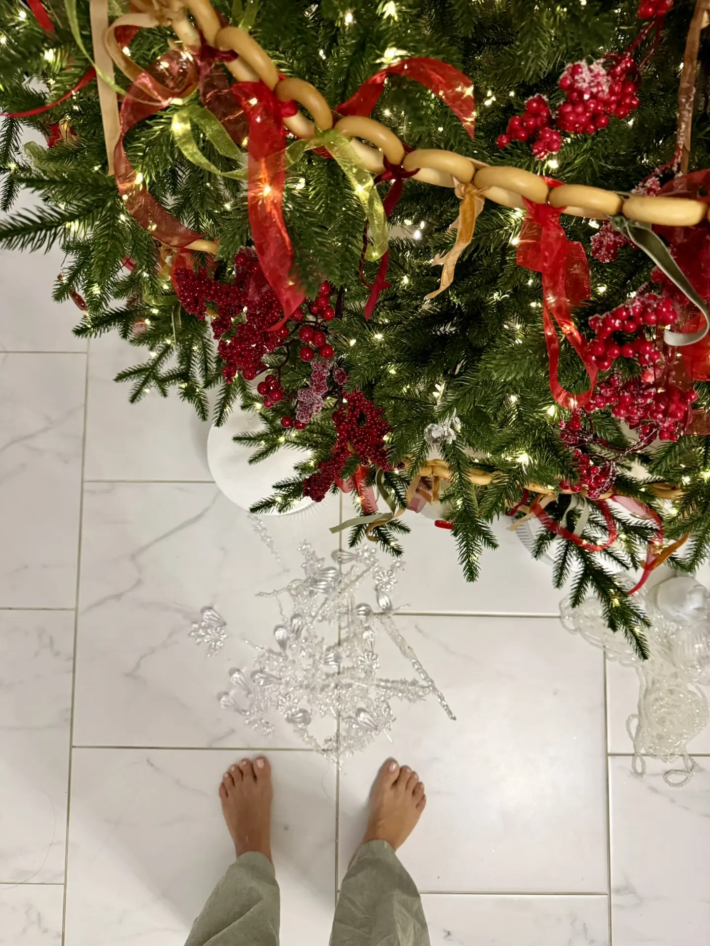 Достала часть украшений и посуду. В спальне снова будет та самая худая елка на ножке ✨