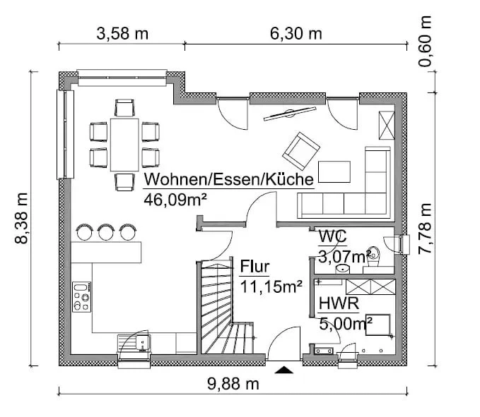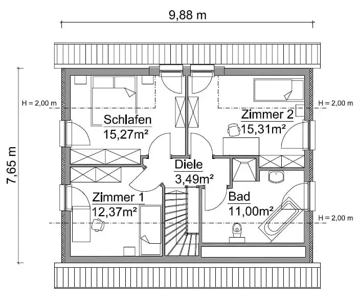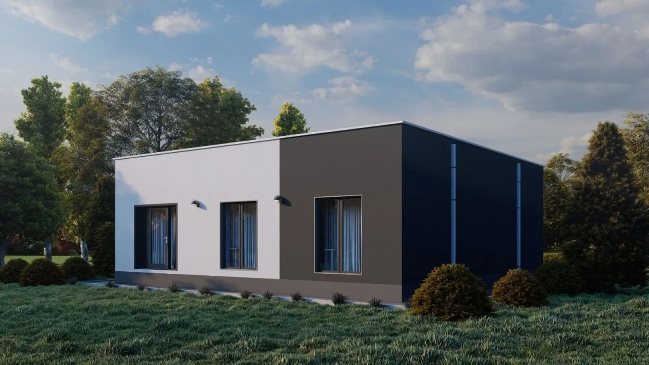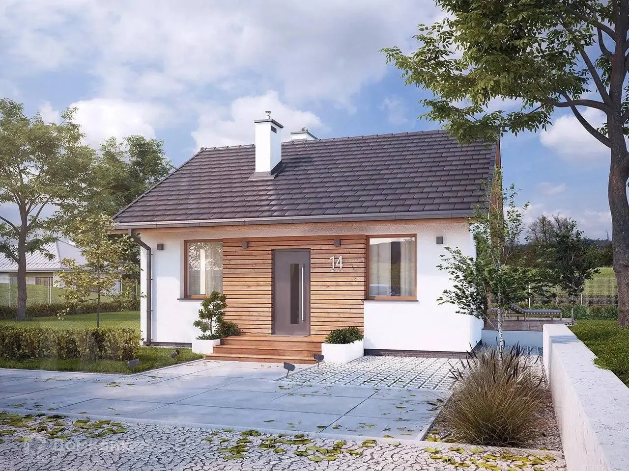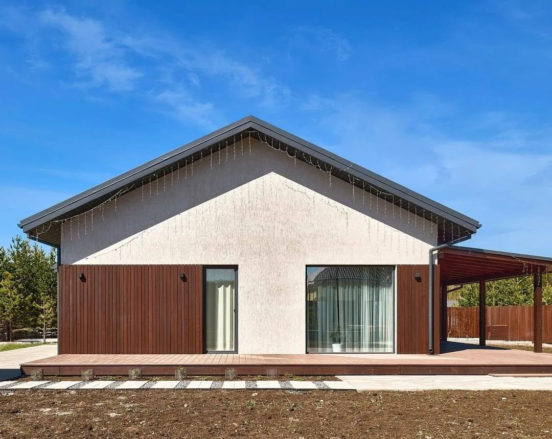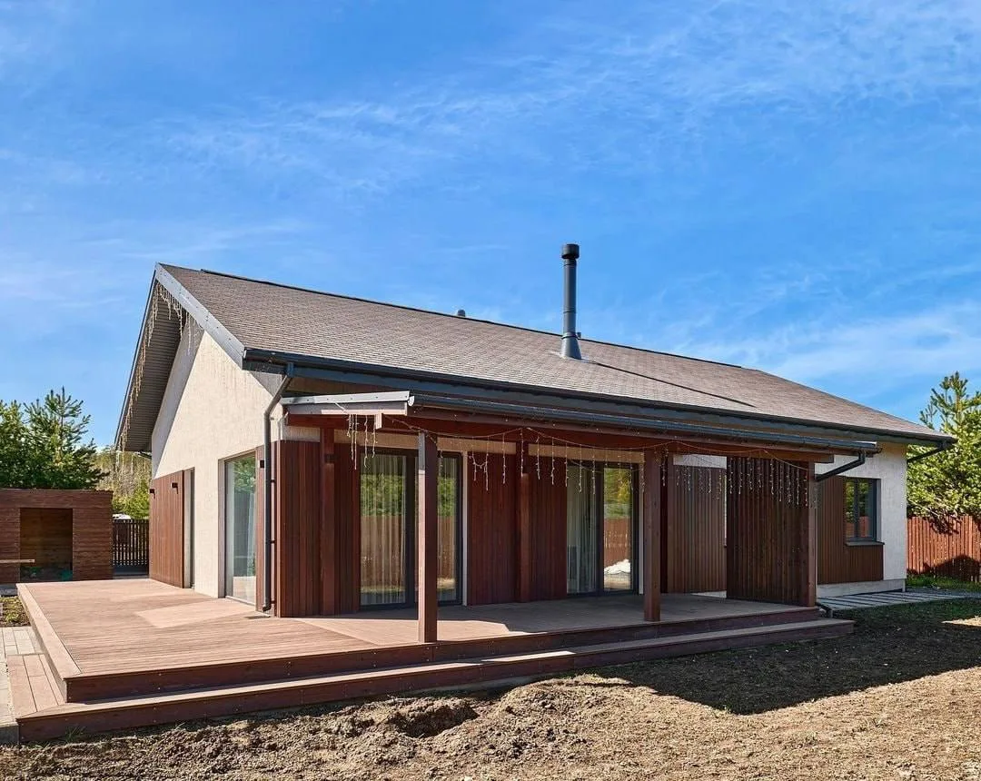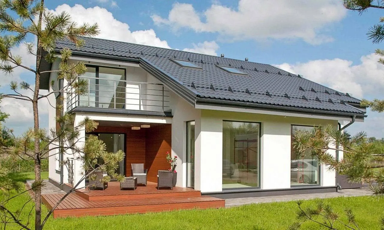 Классический немецкий дом с двускатной крышей и мансардным окном. Жилая площадь 110 кв. м.
