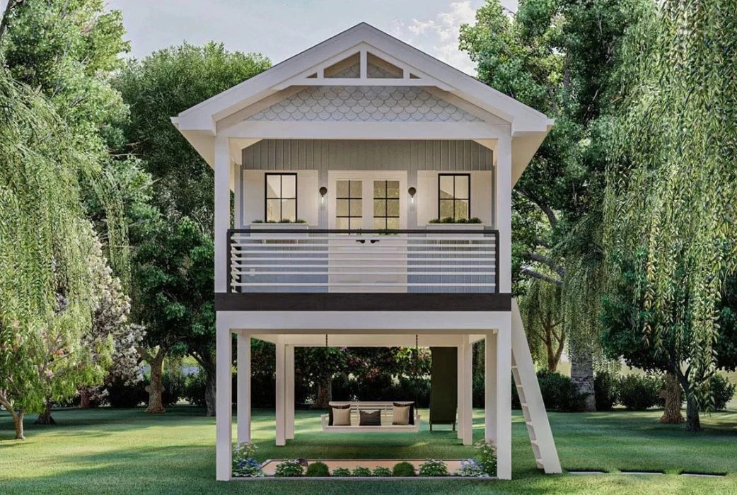 Гостевой игровой домик на заднем дворе площадью 16,5м2.