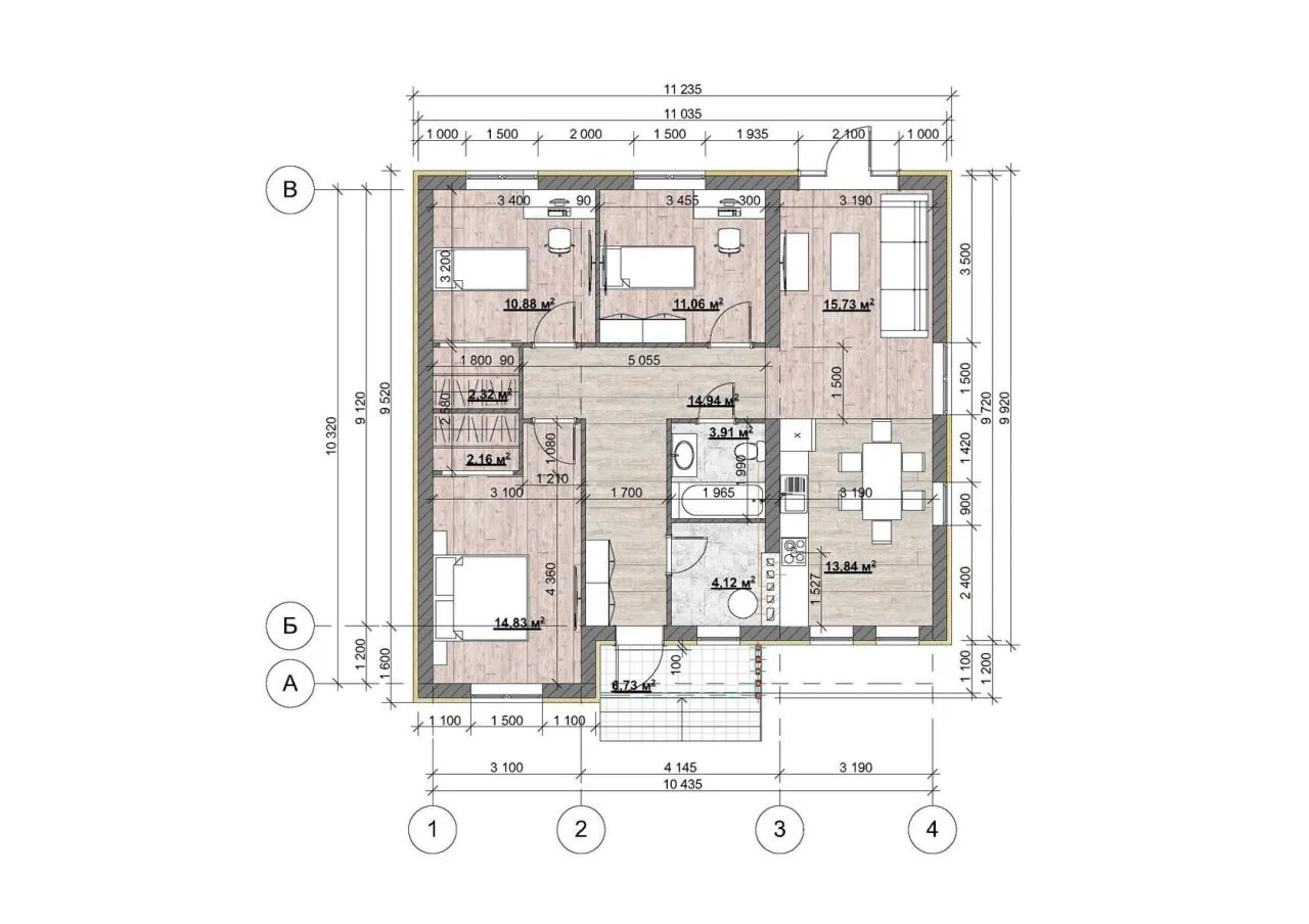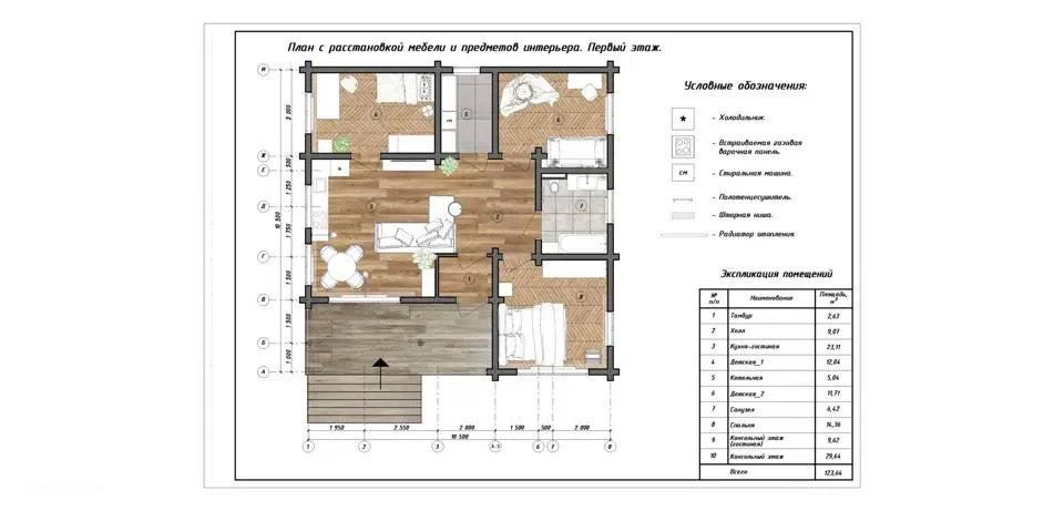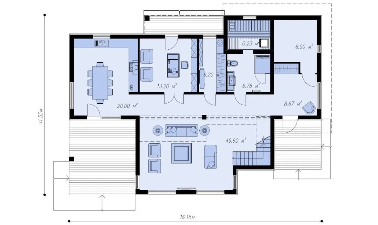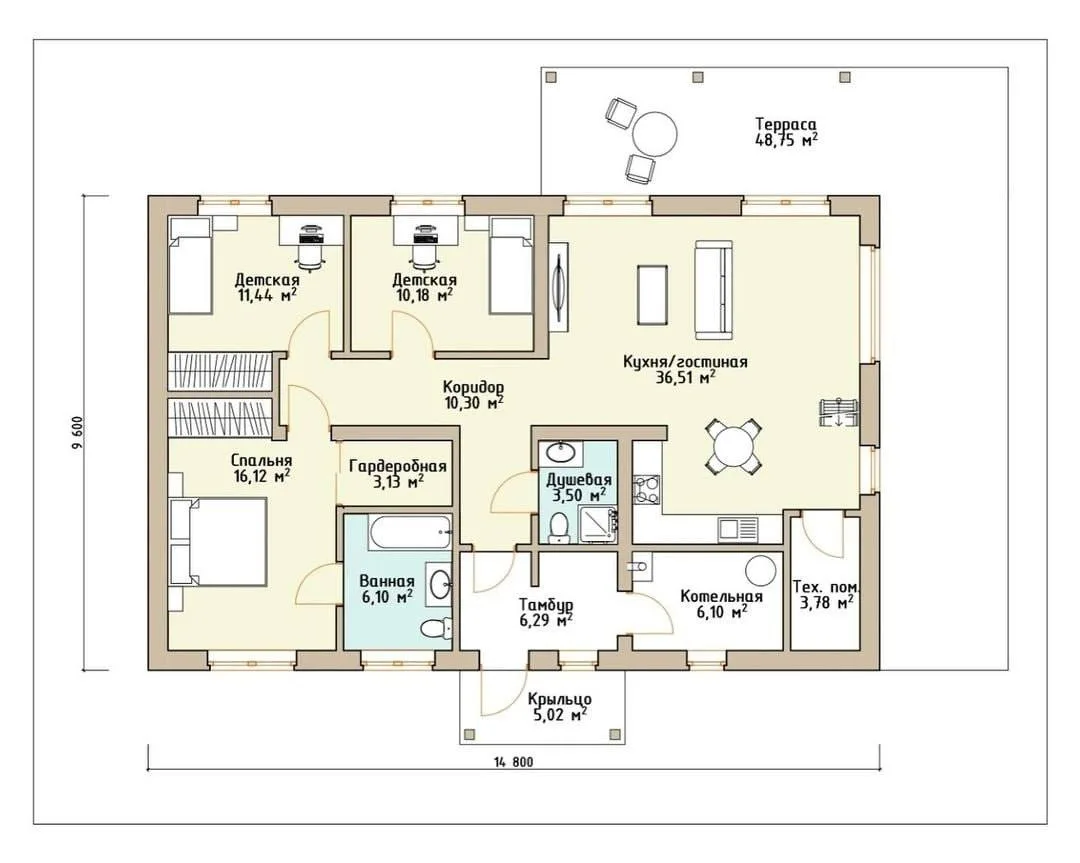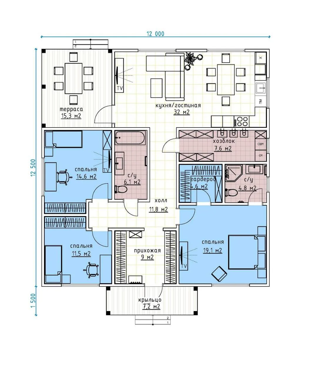 Планировка одноэтажного дома 133 м² для круглогодичного проживания