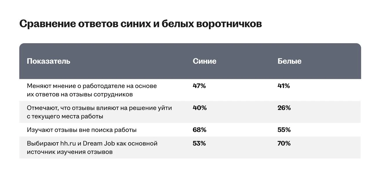 - 43% меняют мнение о компании после ответа работодателя на отзыв.