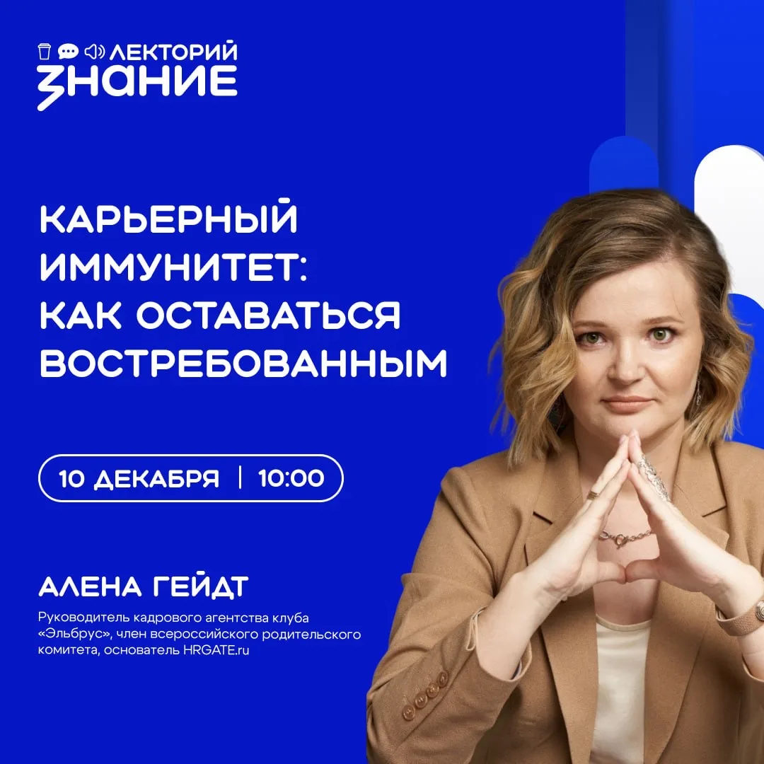 В рамках проекта Знание.Лекторий поговорим с вами о карьерном иммунитете и компетенциях, которые пригодятся каждому сотруднику в 2026 году.