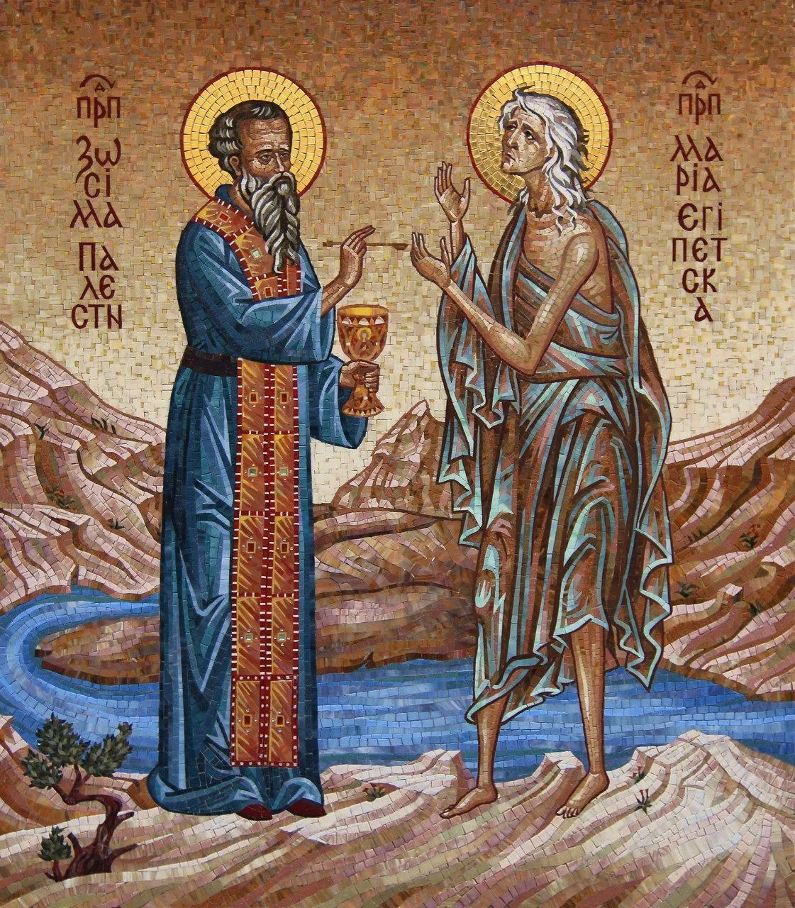 Отроковица Мария, покинув в 12 лет родительский дом в городе Александрии, и в поиске наслаждений и утолении плотских страстей она прожила 29 лет. В то время на Святой Земле было обретено Древо Животворящего Креста Господня, и тысячи паломников устремились из Египта в Иерусалим. Мария забралась на один из кораблей и прибыла в святой город и последовала с паломниками к храму. Но как ни старалась Мария зайти в него, невидимая сила отбрасывала её назад. После нескольких попыток она поняла, что вся её жизнь — это сплошная похотливая страсть, уводящая её вон из храма.